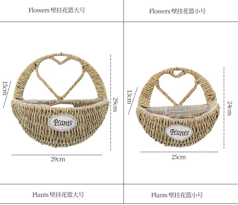 Heart shaped straw wall hanging basket-large size