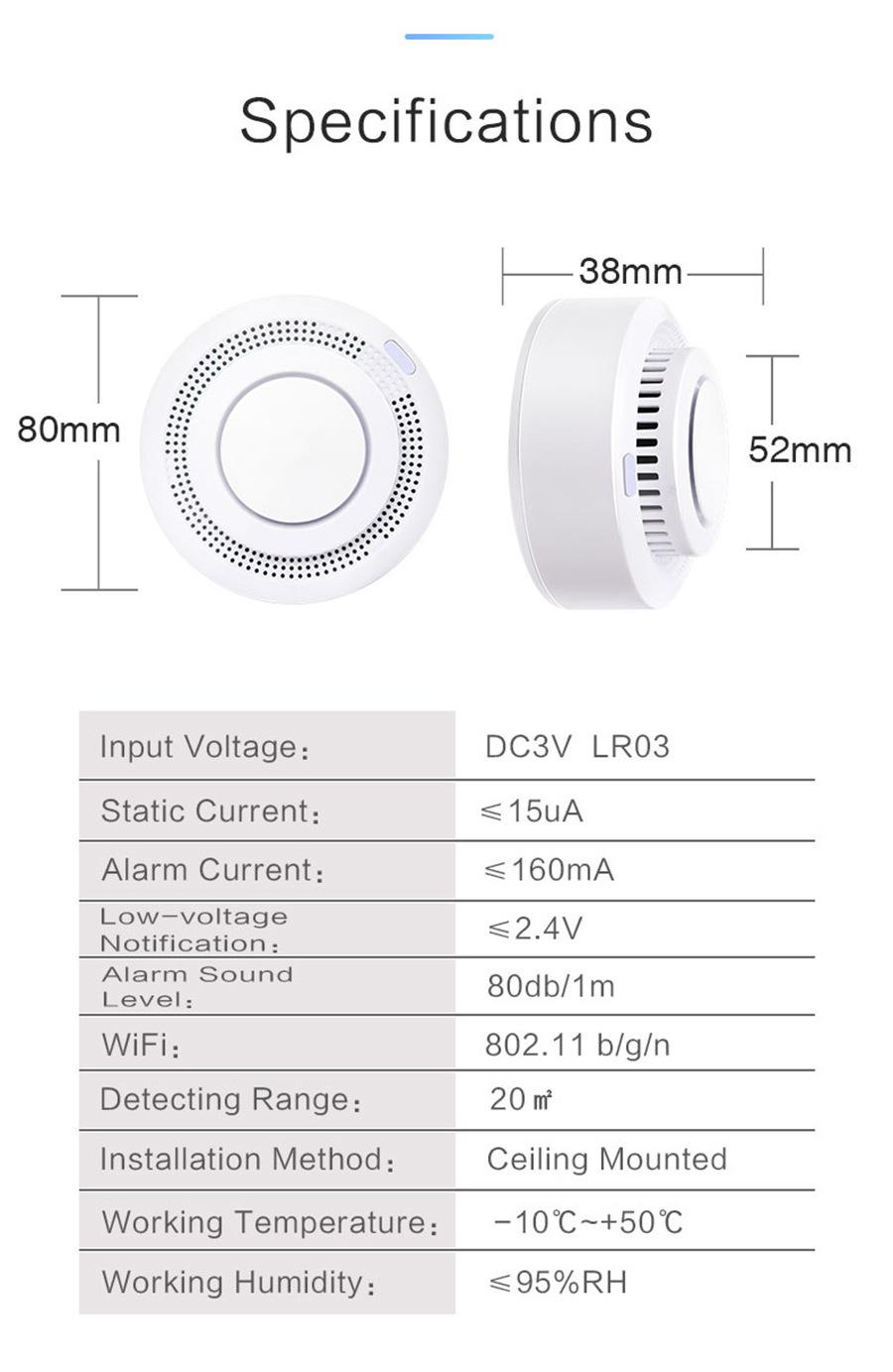 Compra Detector de humo inteligente WiFi Tuya Graffiti APP Sensor de humo Detector de humo Alarma al por mayor en Joom.pro
