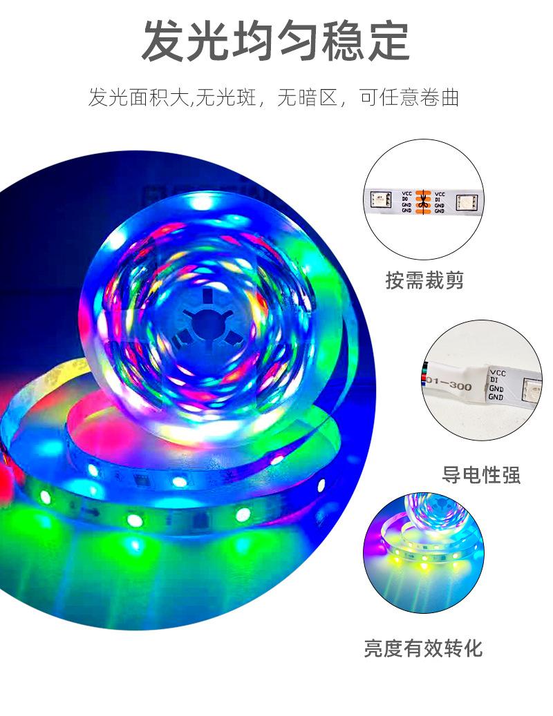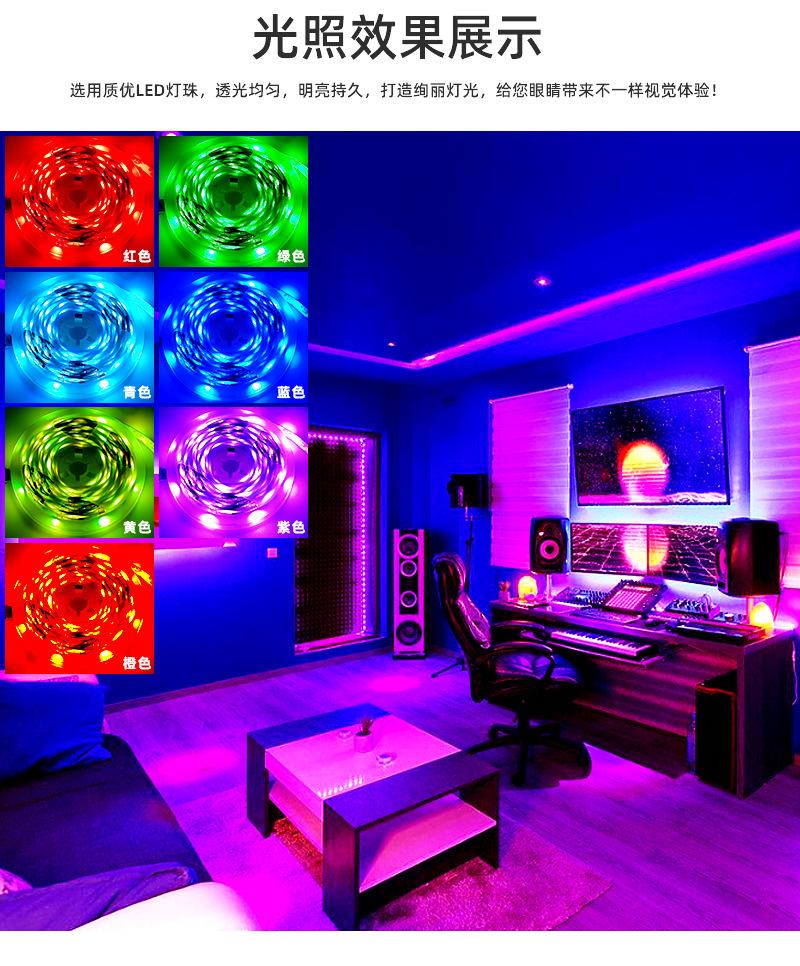Tira de luces LED de 12V Bajo voltaje 5050 Autoadhesiva Tira de luces RGB Cambio de color colorido Barra KTV Hogar Luz ambiental interior