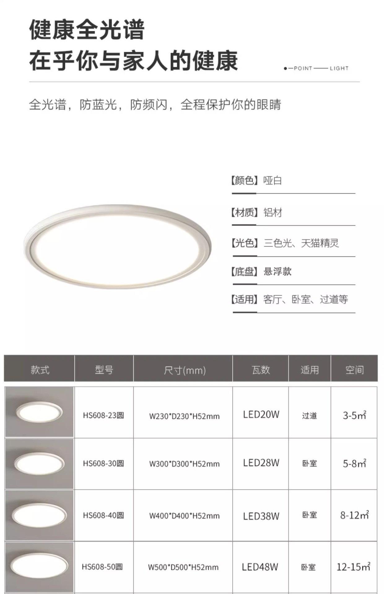Lámpara de Techo para Sala de Estar de Espectro Completo Lámpara de Suspensión Minimalista para Recibidor Protección Ocular Ultrafina Lámpara de Estudio para Dormitorio Principal Lámparas de Zhongshan