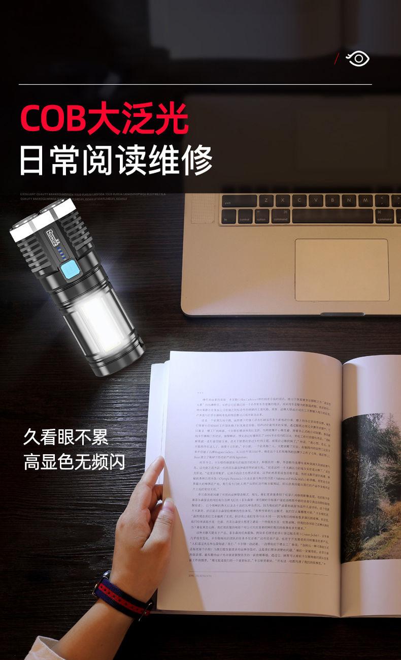 Linterna multifuncional COB lateral transfronteriza, LED para exteriores, portátil, para el hogar, recargable por USB, de largo alcance