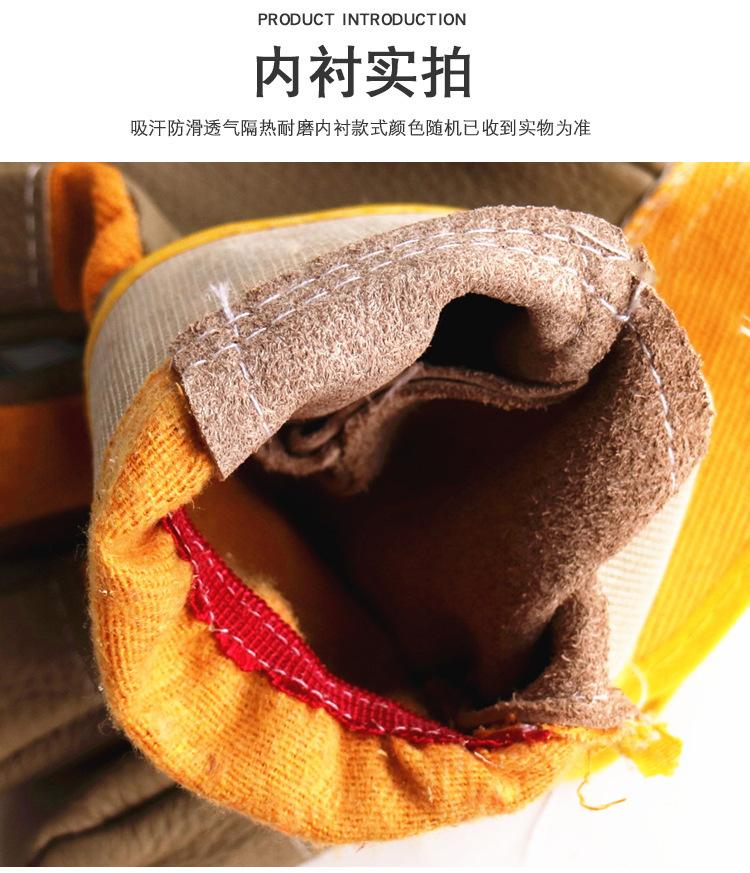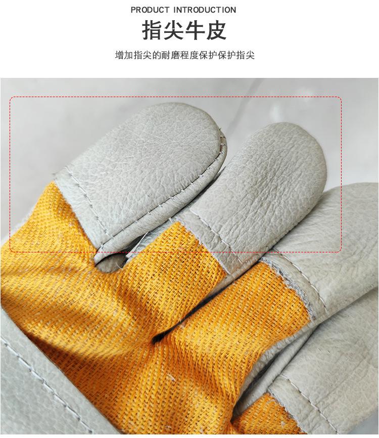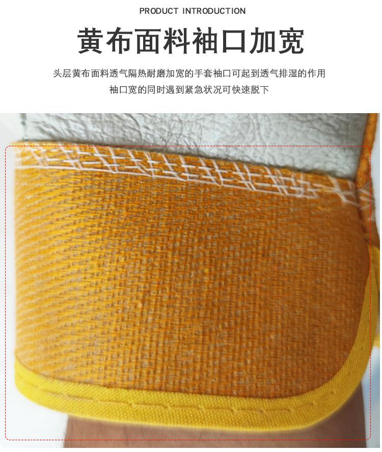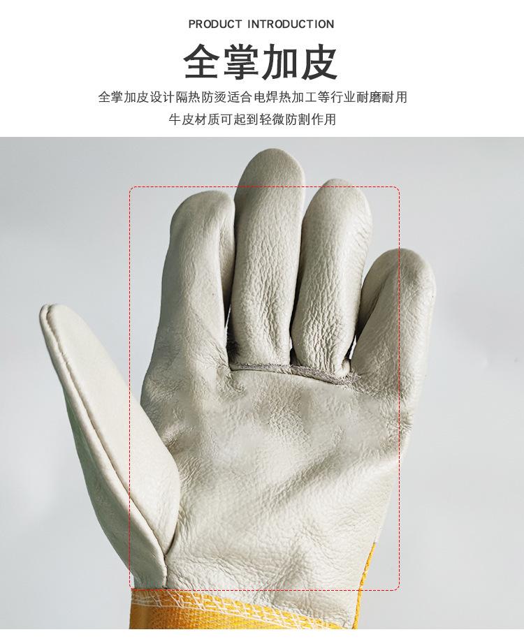Guantes de cuero de vaca de una capa de tela amarilla para soldador, protección laboral para soldadura, palma completa, capa de cuero, resistentes al desgaste y a altas temperaturas.