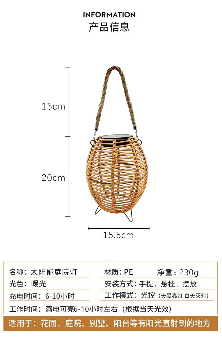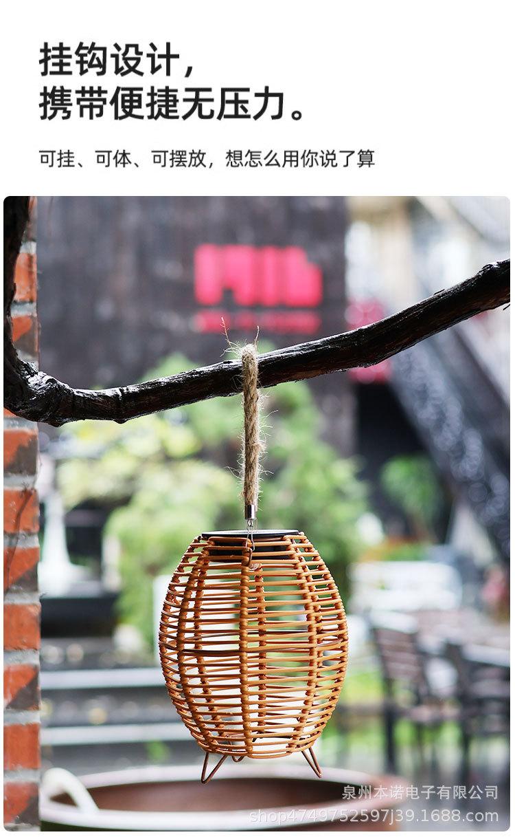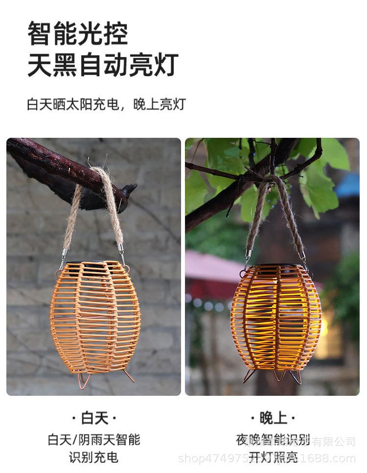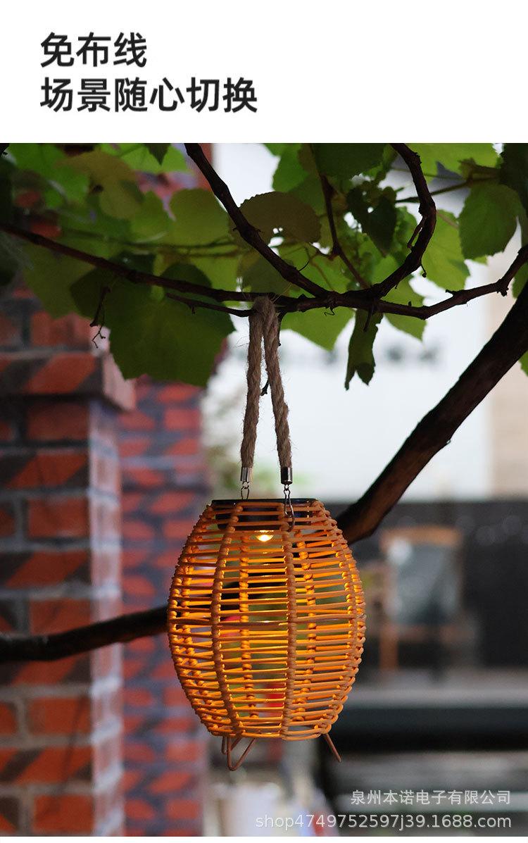 Lámpara solar para exteriores, lámpara colgante para patio, paisaje, jardín, balcón, lámpara decorativa de ambiente, lámpara de pie, linterna portátil de bambú