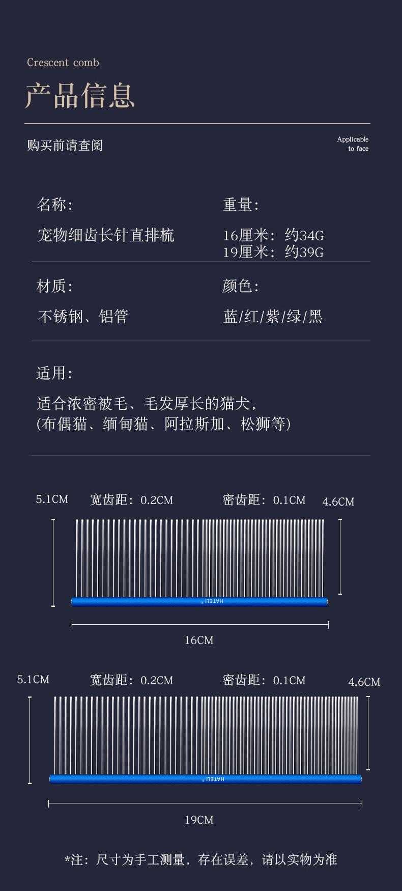 Peine para mascotas Hartley, peine de púas, peine para el cabello, peine para gato y perro Teddy, belleza, peine recto, peine para abrir nudos, peine para gato esponjoso cepillado