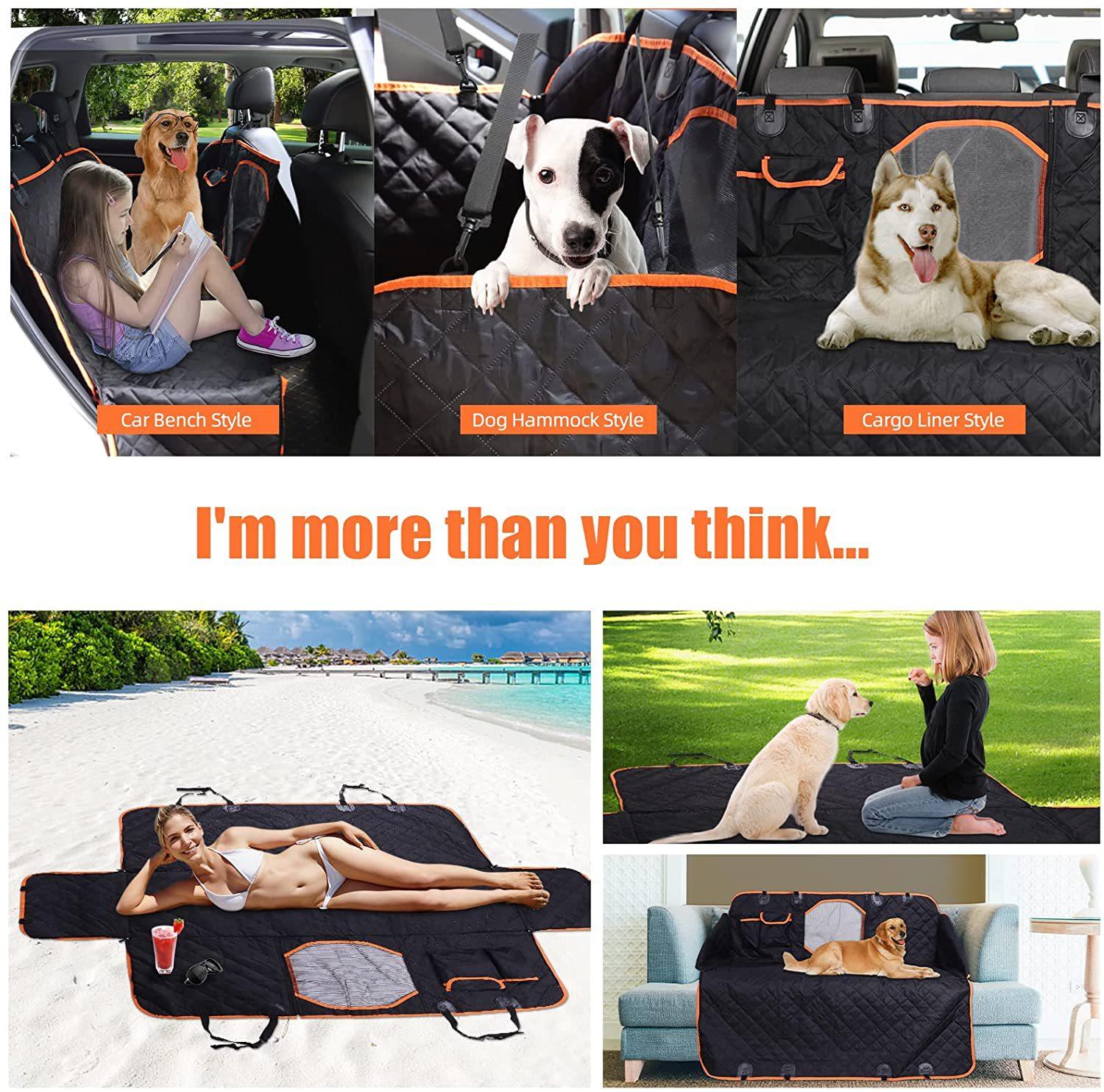 Perfecto para tu coche – Esta funda para asiento de coche para perros es súper fácil de instalar o quitar, rápida para entrar y salir con tu perro en 60 segundos. Fácilmente convertible de hamaca para coche para perros a funda de banco, esta funda para asiento trasero para perros también se puede usar como funda de carga. Esta es una funda peluda para asiento de perro para tu mascota en el asiento trasero, que te da tranquilidad en cada giro. Adecuada para diferentes vehículos como coches, camionetas, SUV. Tamaño máximo de apertura (53" de ancho x 59" de largo).