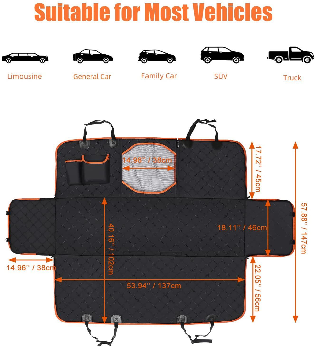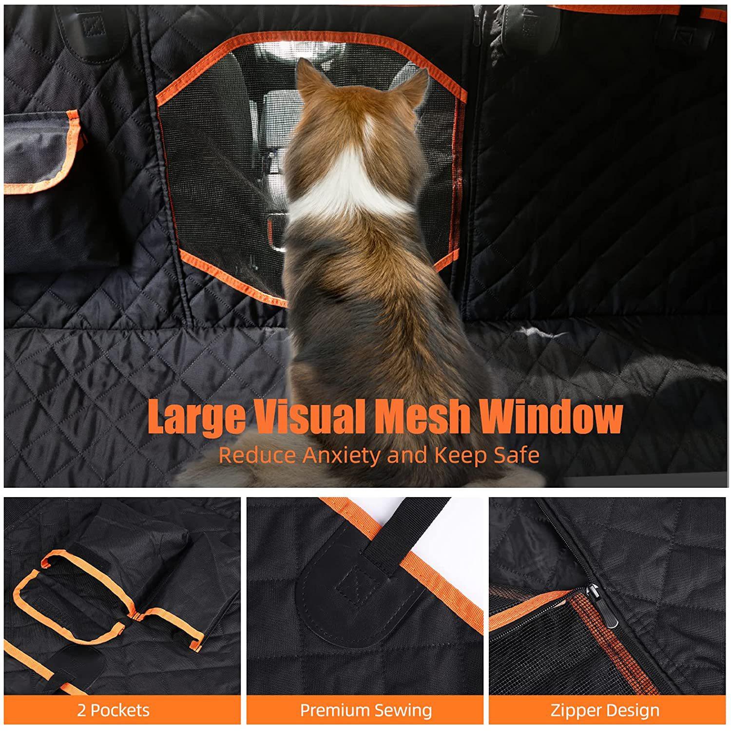 Diseño de Ventana de Malla y Bolsillo de Almacenamiento - Nuestra funda para asiento de perro está equipada con ventanas de malla transpirable para proporcionar una mejor circulación de aire para su perro. Esta funda para asiento de perro es conveniente para que usted y su adorable perro se vean, lo que ayuda a su perro a reducir la ansiedad y a mantenerse tranquilo durante el viaje.
