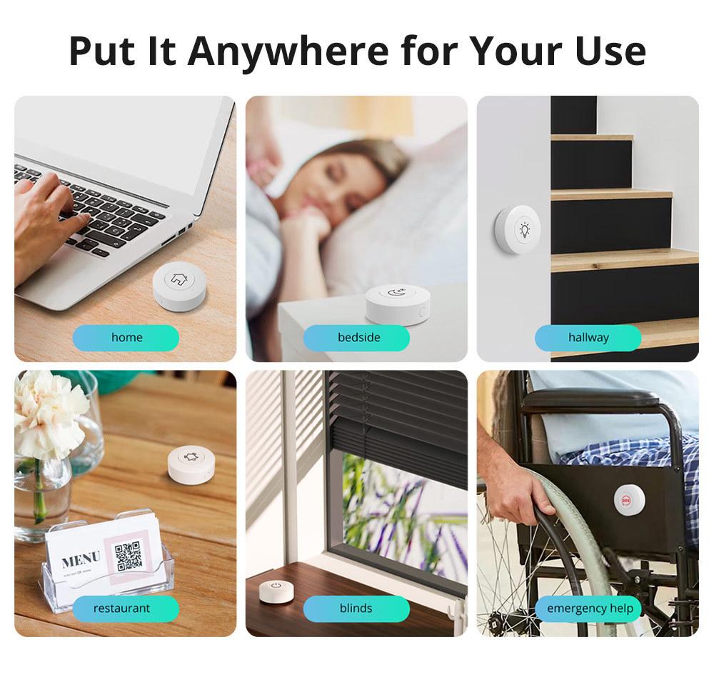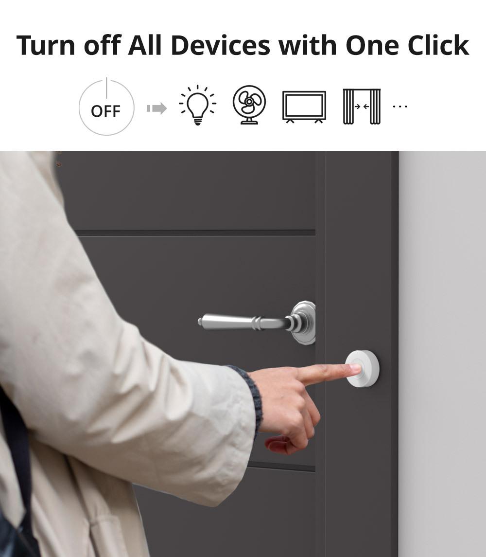 SNZB-01P se puede colocar donde lo necesites, o pegar con Adhesivo 3M y una placa metálica en una superficie plana en cualquier lugar, luego crear una escena inteligente, como apagar todos los dispositivos con un solo clic. El control bidireccional está incluso disponible para que enciendas/apagues la luz desde dos ubicaciones.
