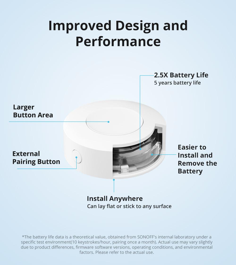 Comparado con el SNZB-01, el SNZB-01P tiene un diseño y rendimiento mejorados. Con un área de botón más grande, 5 años de duración de batería, botón externo, la batería es más fácil de instalar y reemplazar.
