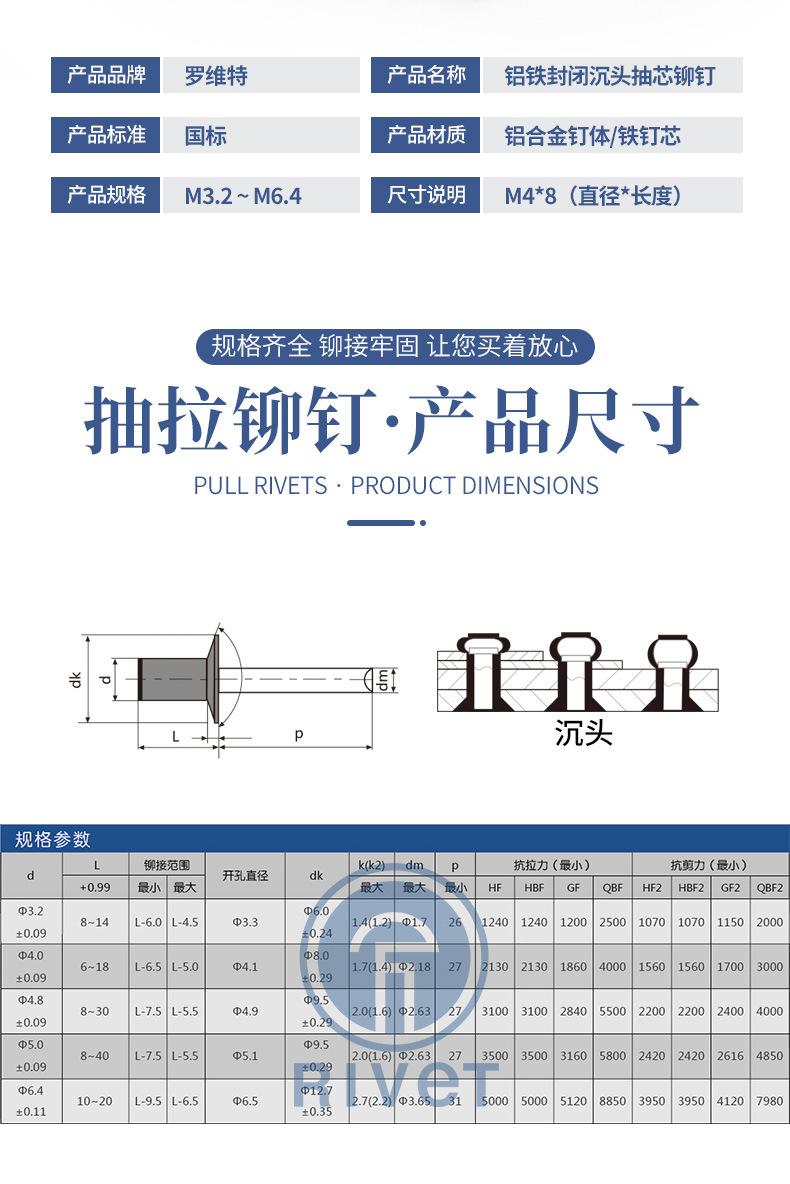 Remaches de Cabeza Avellanada Roweit Aluminio Remaches Ciegos de Núcleo Cerrado Sellados Impermeables Fabricante Acero Inoxidable Auto-Operado