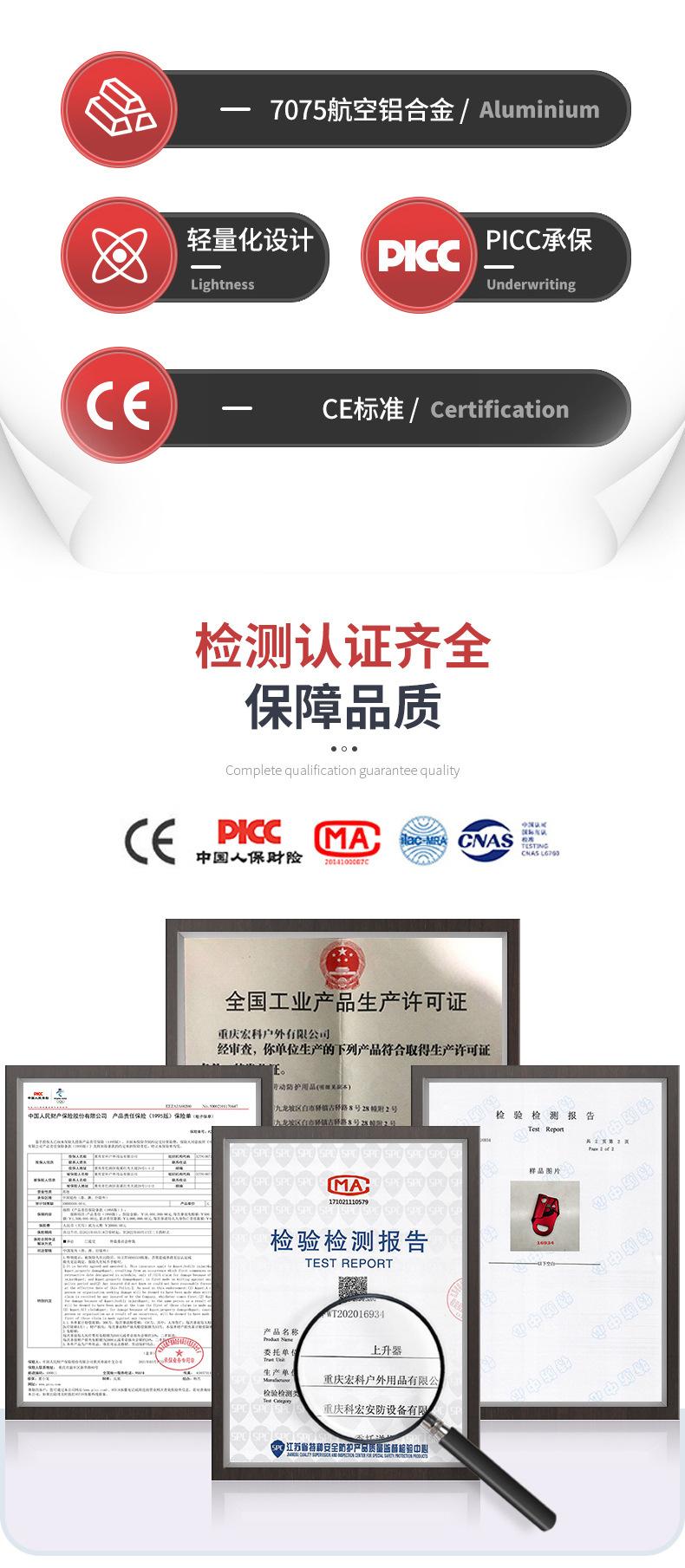 Chongqing Hongke Outdoor Products Co., Ltd. produce y vende: suministros para escalada en roca, suministros de expansión, equipos de protección para áreas de juego infantiles, componentes de protección contra caídas a gran altitud, cinturones de seguridad, ascendedores, descendedores, agarradores de cuerda, cerraduras principales, cinturones planos, cuerdas dinámicas, cuerdas estáticas, cuerdas para trabajo aéreo, etc. Goza de gran popularidad en el mercado de consumo y goza de un alto prestigio entre los consumidores. La empresa ha establecido relaciones de cooperación duraderas y estables con numerosos minoristas y agentes. Chongqing Hongke Outdoor Products Co., Ltd. distribuye una gama completa de productos a precios razonables. Chongqing Hongke Outdoor Products Co., Ltd. es una empresa sólida, prioriza el crédito, cumple con los contratos y garantiza la calidad de sus productos. Se ha ganado la confianza de los clientes gracias a sus diversas características comerciales y al principio de bajos beneficios pero rápida rotación.