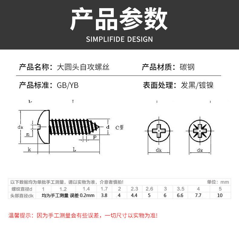 Tornillos autorroscantes de cabeza redonda, cabeza plana y niquelada PA, de acero al carbono, endurecidos, tornillos pequeños, tornillos pequeños M1.5/M1.8 ¥50.00 Comprar ahora