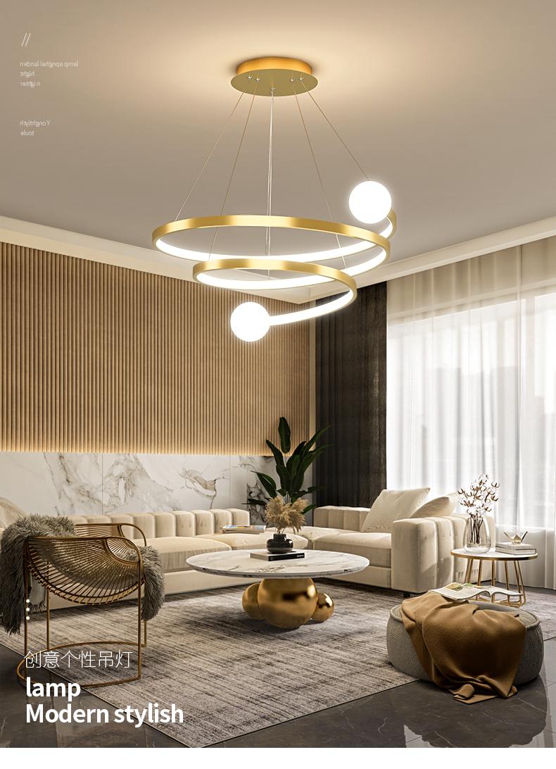 Lámpara de araña para sala de estar, moderna, de ambiente sencillo, para restaurante, para el hogar, de alta gama, con personalidad creativa, luz de anillo de lujo, lámpara nórdica