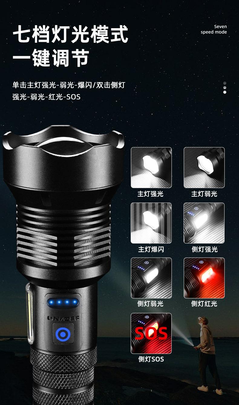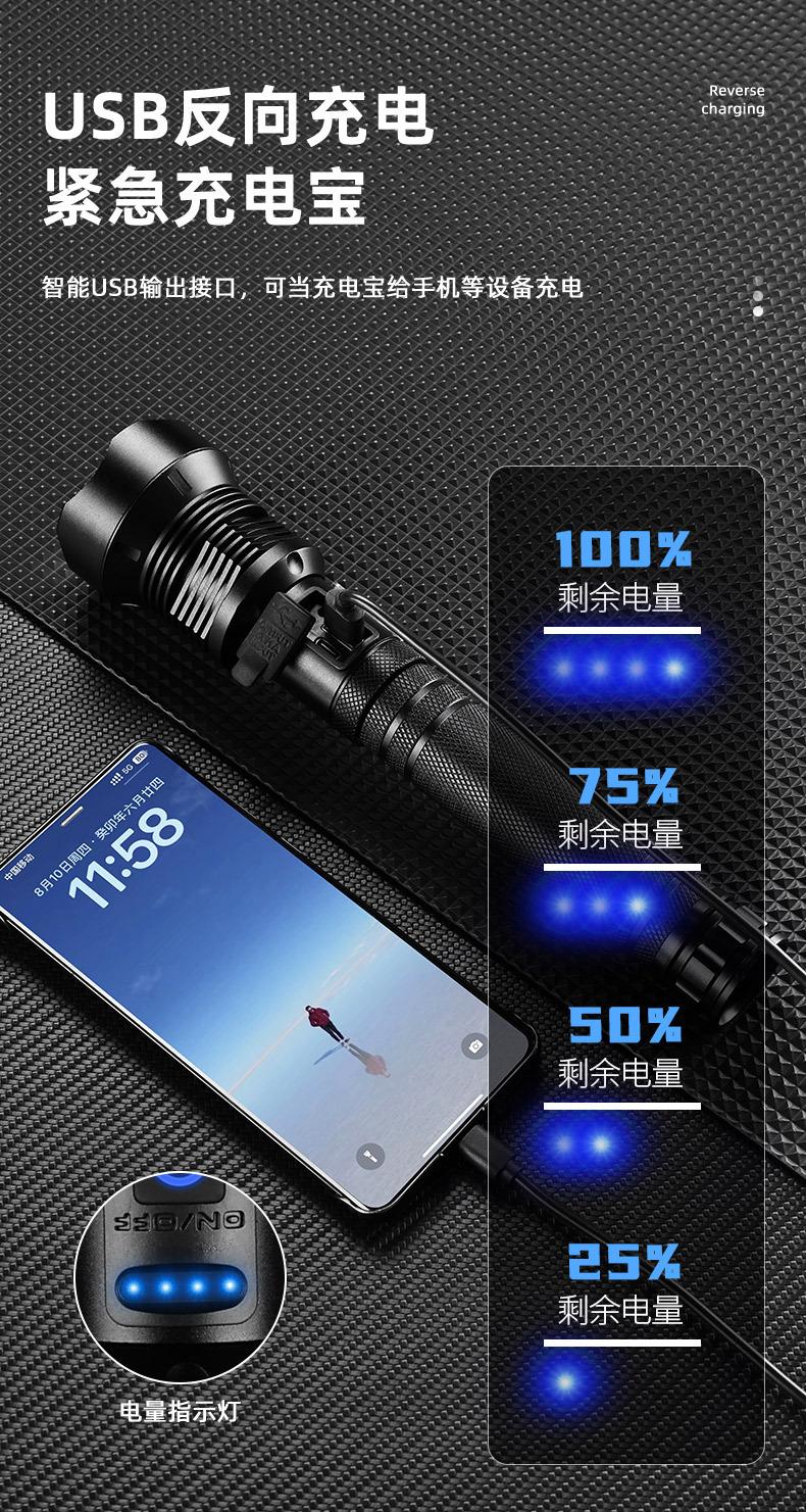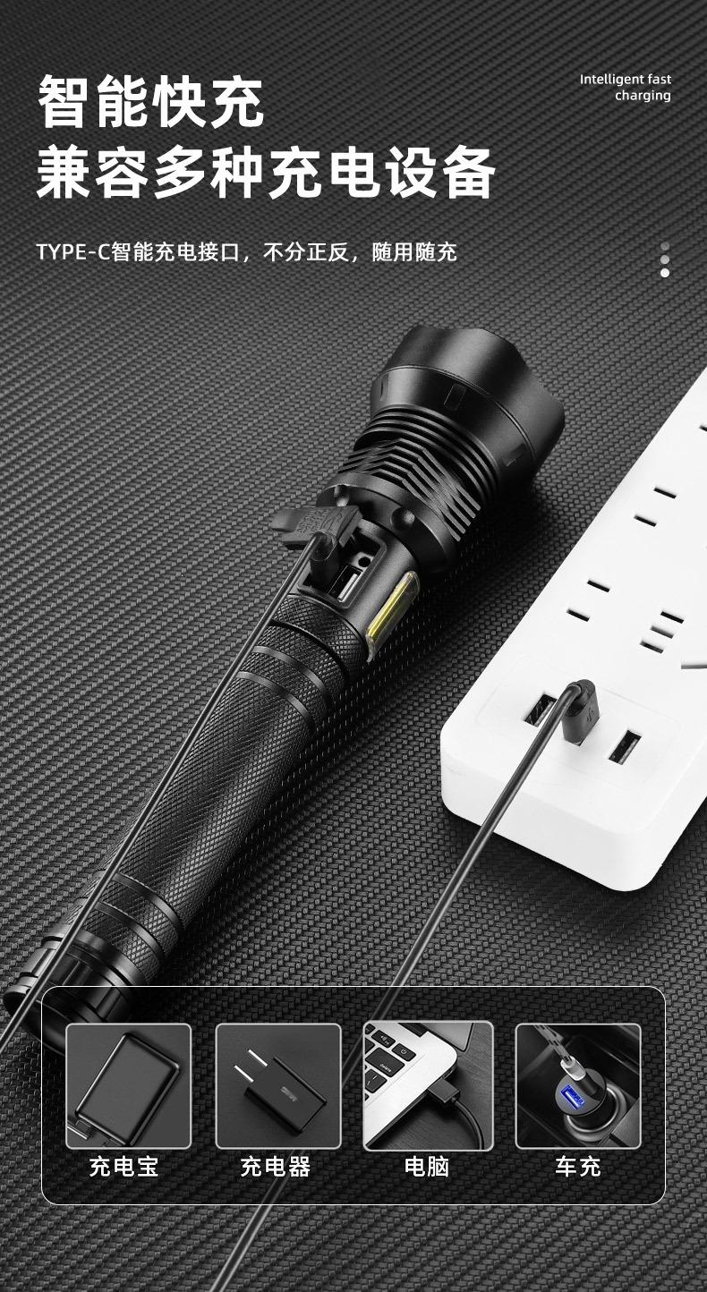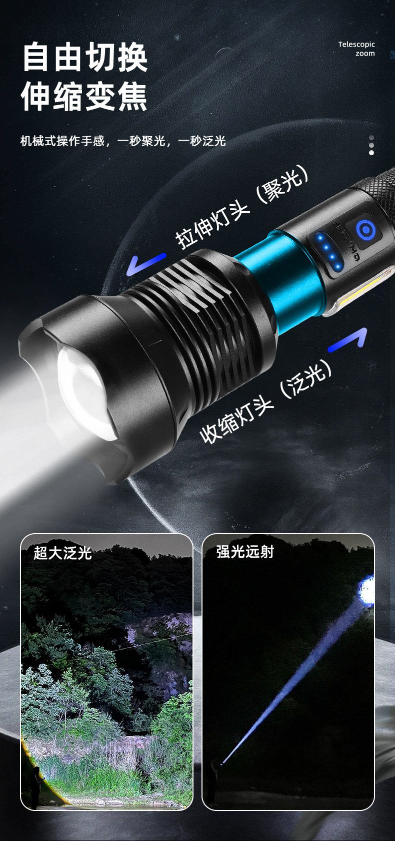 Linterna de carga para teléfono móvil XHP70 con luz potente, carga USB, luz roja COB, luz lateral, zoom telescópico