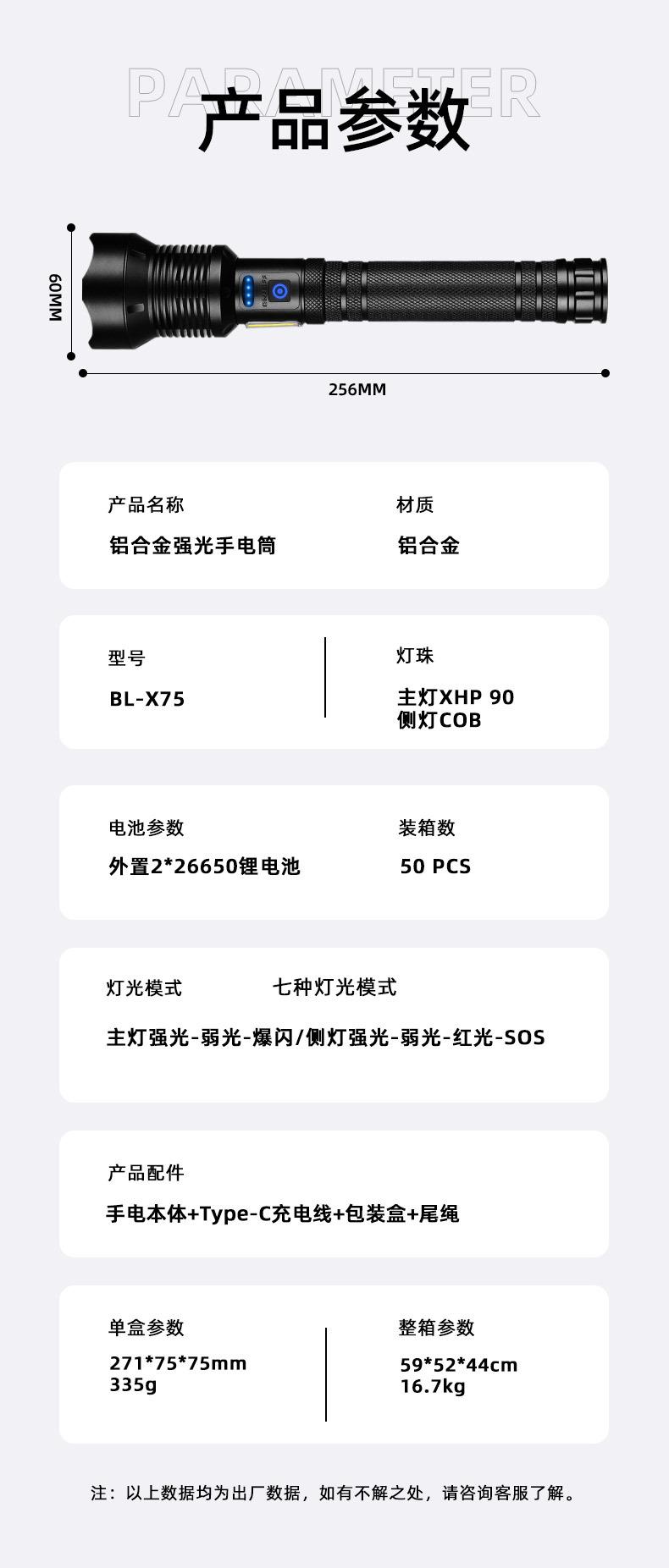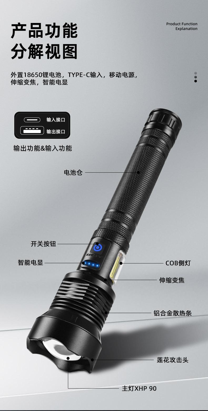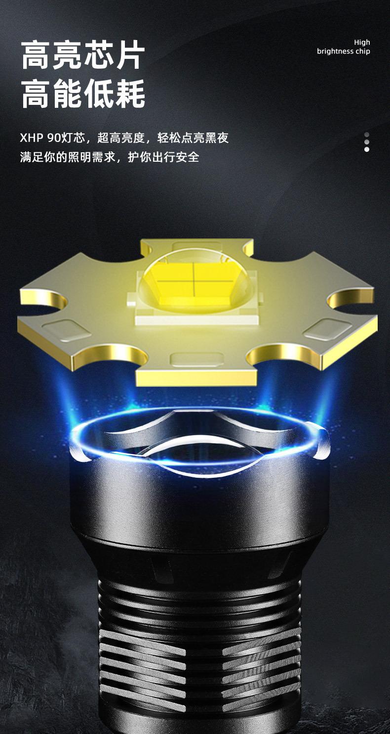 Linterna de carga para teléfono móvil XHP70 con luz potente, carga USB, luz roja COB, luz lateral, zoom telescópico
