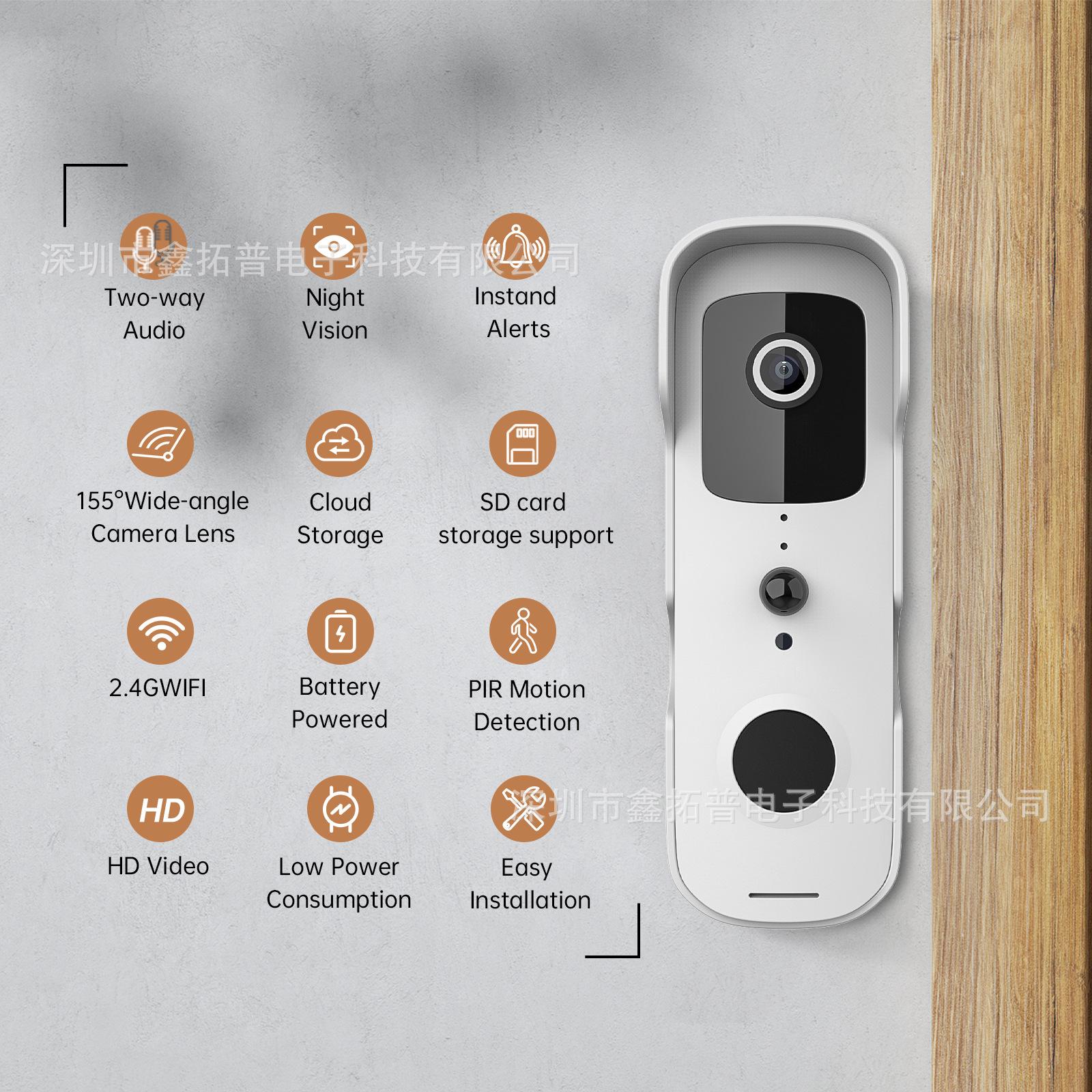Precios de videoportero arribaNo incluye timbre interior ni cable de datos de batería, solo el precio del videoportero inalámbrico para exteriores, Máquina ding-dong para interiores estándar europeo, estándar americano, enchufe estándar británico 18 yuanes/pieza, batería 9 yuanes/pieza, ¡por favor tenga en cuenta! El timbre se puede usarTuyaSmart y Smart Life dos aplicaciones (si compras la versión T30 del timbre que es compatible con Google/Alexa, se puede conectar a altavoces inteligentes de Google y echo show para su uso, activando el timbre por voz); la aplicación Ubox también se puede personalizar en masa