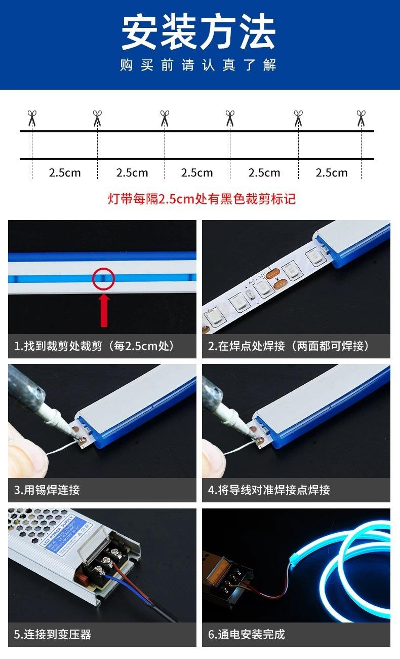 No se realizarán devoluciones ni cambios de productos sin cortes si no hay problemas de calidad. Solo se puede devolver o cambiar sin motivo el rollo completo que no se haya cortado en un plazo de siete días. Siempre que el rollo de 100 metros esté cortado y no haya problemas de calidad, no se realizarán devoluciones ni cambios. La tira de luz se vende principalmente al por mayor, por lo que no contiene accesorios. Para entornos exteriores o con vapor de agua, las juntas y los extremos deben sellarse con pegamento para protegerlos del agua y no pueden colocarse en agua durante mucho tiempo. No se recomienda el uso de opciones convencionales en entornos acuáticos. Se recomienda un uso de las opciones convencionales durante no más de cuatro horas al día, y las opciones de iluminación a largo plazo se recomienda un uso de no más de diez horas al día. No se puede utilizar durante mucho tiempo, no puede funcionar con electricidad y debe fijarse aproximadamente a medio metro cuando está suspendida en el aire. Tire con fuerza de la tira de luz, no la dañe, instálela sobre materiales aislantes, no utilice materiales conductores para fijar la tira de luz, ya que puede causar cortocircuito, no permita que la tira de luz se deforme por la fuerza, no la instale en un entorno conductor o inflamable y explosivo, no la instale en un entorno sellado e instálela en un entorno con buena ventilación y disipación de calor. La tira de luz solo se puede conectar a un solo enchufe. Las tiras de luz de 220 V tienen parpadeo al disparar. Si necesita un enchufe sin parpadeo, puede ponerse en contacto con el servicio de atención al cliente para personalizarlo. La tira de luz no se puede instalar en una ranura de aluminio. La ranura de aluminio no puede ventilarse ni disipar el calor. No hay garantía para su uso en una ranura de aluminio (excepto para el modelo de ranura de aluminio). La instalación del modelo con respaldo adhesivo requiere que se corte una distancia y se refuerce con pegamento. La tira de luz solo se puede cortar en el espacio en blanco de todo el medidor. La tira de luz no se puede iluminar como un rollo completo. Debe extenderse e iluminarse para la prueba. Cuando se enrollan y se encienden, la temperatura no se puede disipar y es fácil hacer que el medio se derrita. El pasador debe insertarse en el núcleo del cable y no se puede insertar descentrado (la inserción descentrada puede disparar fácilmente el disyuntor y causar daños al enchufe y a un metro de la tira de luz). La tira de luz tiene polos positivo y negativo y no se encenderá después de la instalación normal. La tira de luz se puede encender conectando el enchufe en la dirección opuesta sin mover el enchufe. La tira de luz debe conectarse a un enchufe correspondiente antes de poder usarse. Es fácil causar daños si no coincide o no está conectada a un enchufe. Los compradores compran después de leer esta página de detalles. Por favor, instale de acuerdo con las recomendaciones de la página de detalles. El comprador asumirá la pérdida causada por no instalar de acuerdo con las recomendaciones de la página de detalles, y el vendedor no Se proporciona garantía de calidad. Se requiere un enchufe correspondiente para usar una sección de la tira de luz. Una tira de luz de un solo color requiere un enchufe de un solo color, una tira de luz de cuatro colores requiere un enchufe de cuatro colores y puede parpadear rápido o lento como un todo, una tira de luz de seis colores requiere un enchufe de seis colores y puede saltar y correr en secciones, una tira de luz de siete colores requiere un enchufe de siete colores y puede cambiar de color como un todo. El enchufe de siete colores con control remoto puede seleccionar remotamente el modo de cambio de color de un solo color para ajustar la velocidad de brillo, etc. La tira de luz de tres colores tiene perlas de lámpara de dos colores en ella, y el otro color tiene el efecto de dos colores que se iluminan juntos. Para usar una sección, necesita conectar un enchufe de tres colores y también conectar un interruptor doméstico común (el interruptor no se vende). Después de completar la conexión, el interruptor cambia a un color y permanece encendido. Varias secciones en un área no pueden cambiar de luz sincronizadamente.