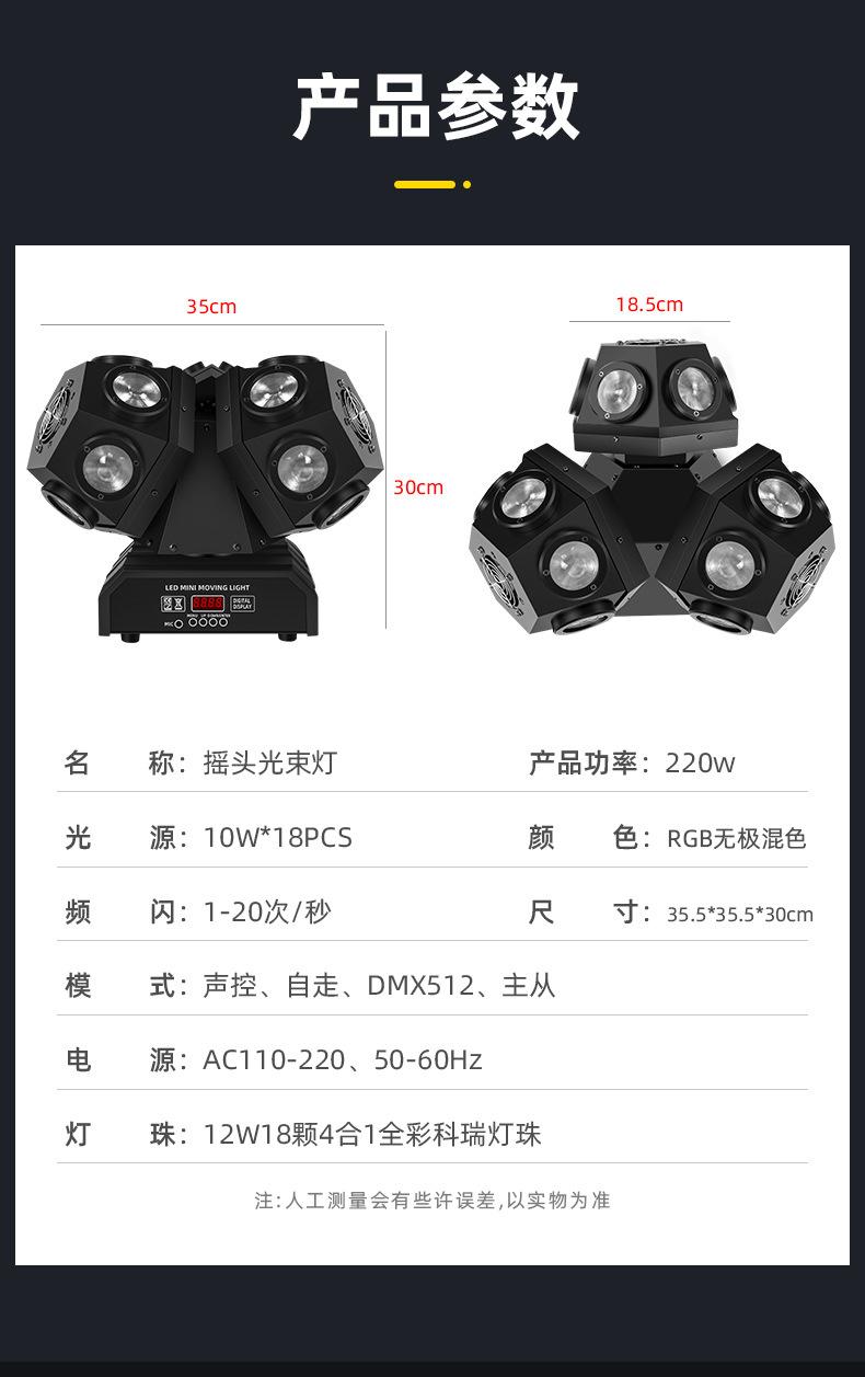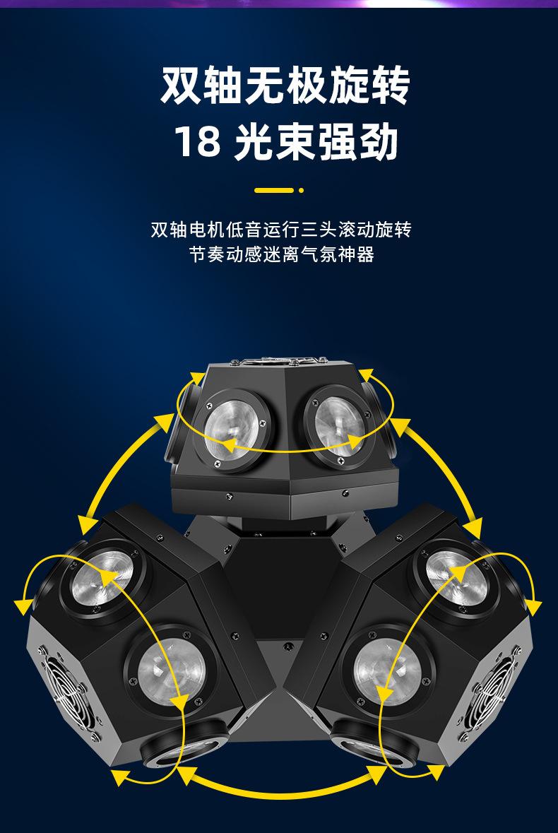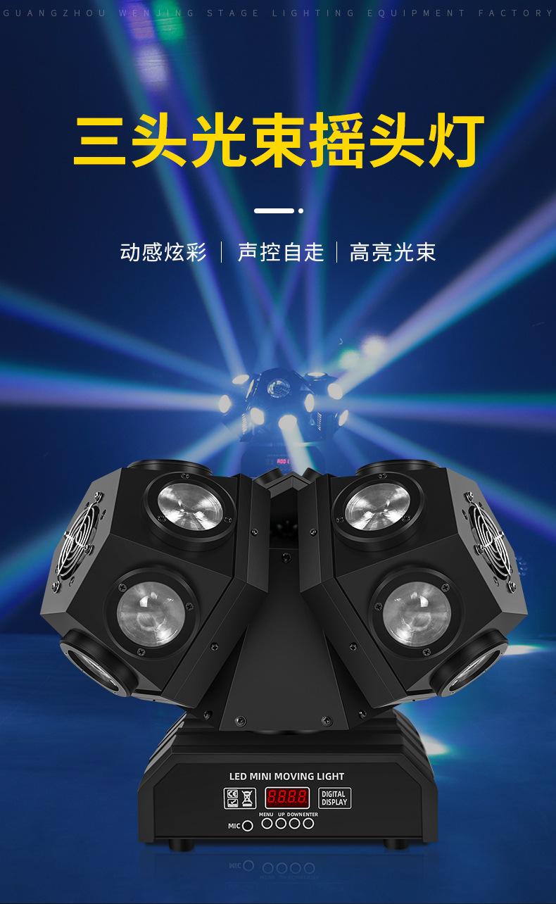 Luz de cabeza móvil de tres cabezales, luz láser de tres brazos, luz láser, barra giratoria colorida, flash de escenario KTV