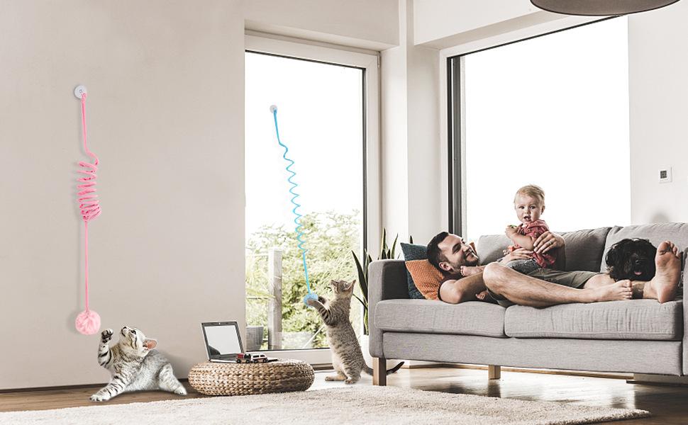 Suministros transfronterizos para mascotas, juguetes para gatos de peluche de color, con resorte, para colgar en la puerta, con ventosa, venta al por mayor.