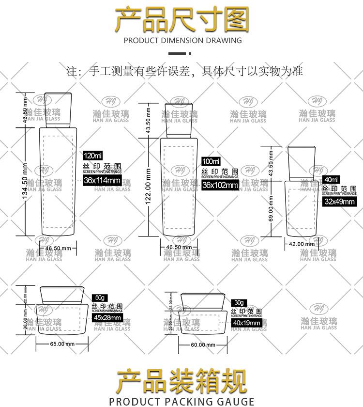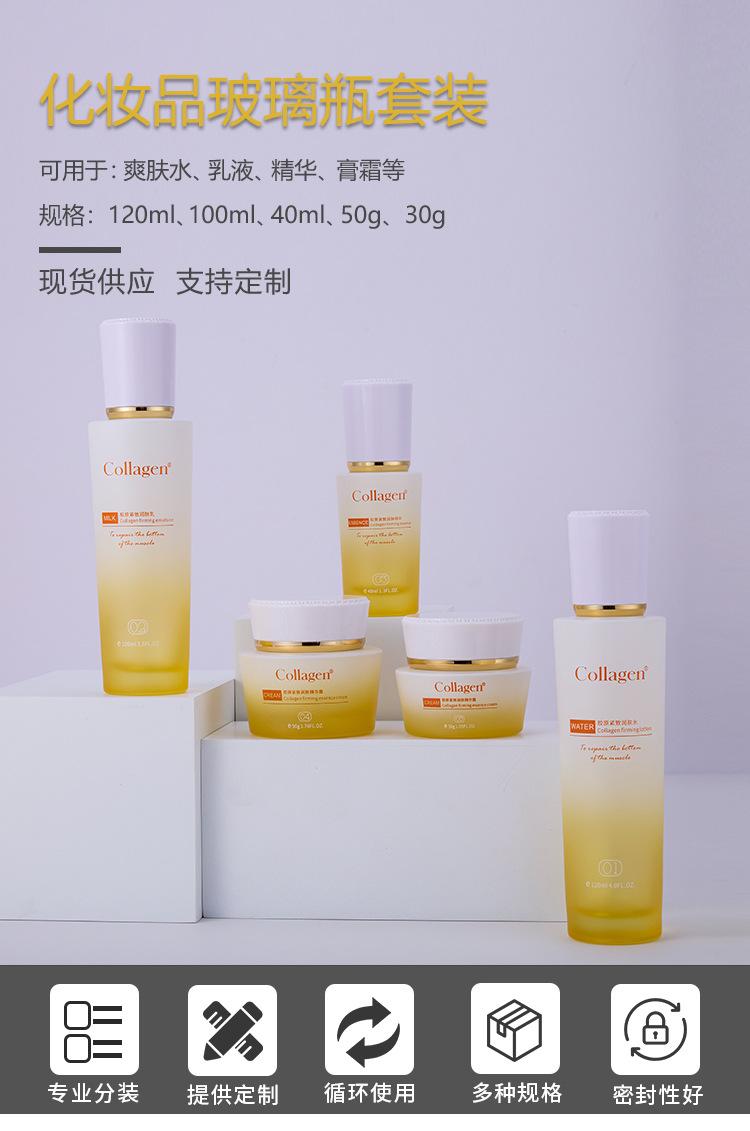 Frasco de Vidrio Cosmético Hanjia Juego 120ml Frasco para Loción 50g Crema Frasco para Crema Venta al por Mayor Botella para Cuidado de la Piel Empaque