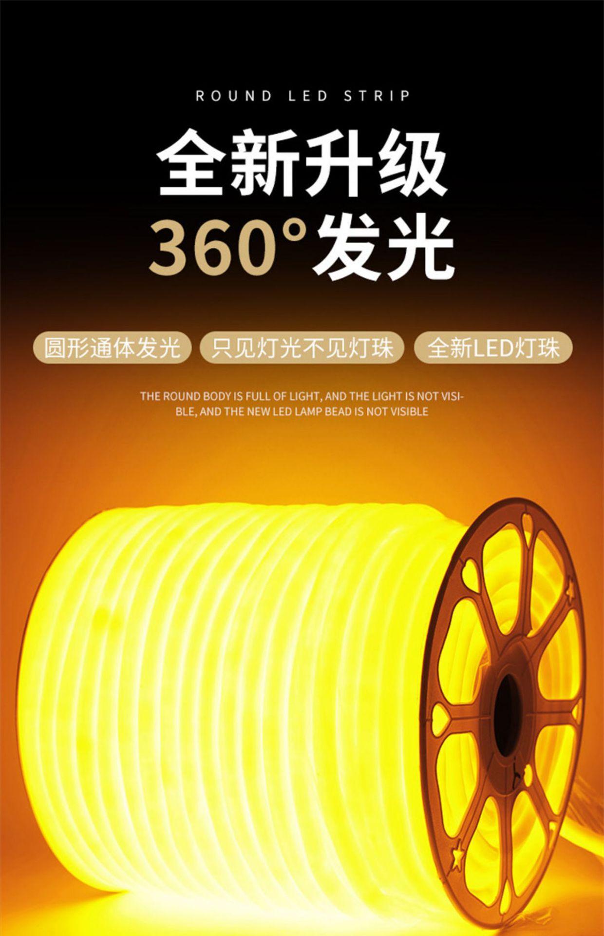 Lámpara de neón LED flexible con 220V redonda 360 grados para exteriores a prueba de agua, proyecto publicitario, iluminación lineal de pared exterior