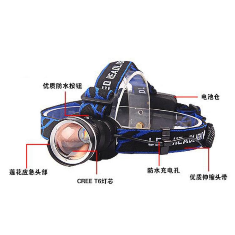 Características del producto: El cabezal de la lámpara de aleación de aluminio es duradero y no se daña fácilmente. La diadema de nailon es muy elástica y se puede ajustar en tamaño, lo cual es muy cómodo. El nivel de impermeabilidad es IP64, que se puede usar en días lluviosos, pero no es adecuado para bucear. El cabezal de la lámpara también tiene una función de enfoque de zoom, y el ángulo de iluminación se puede ajustar para que sea más conveniente ver objetos en diferentes ángulos.