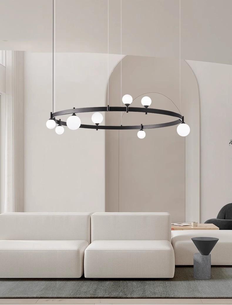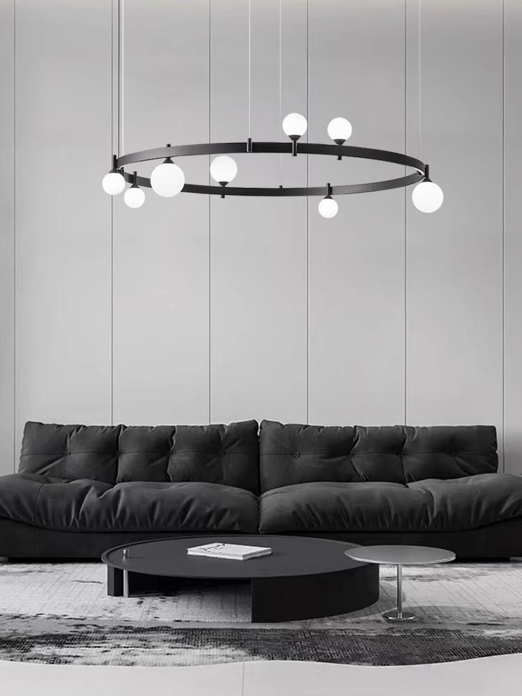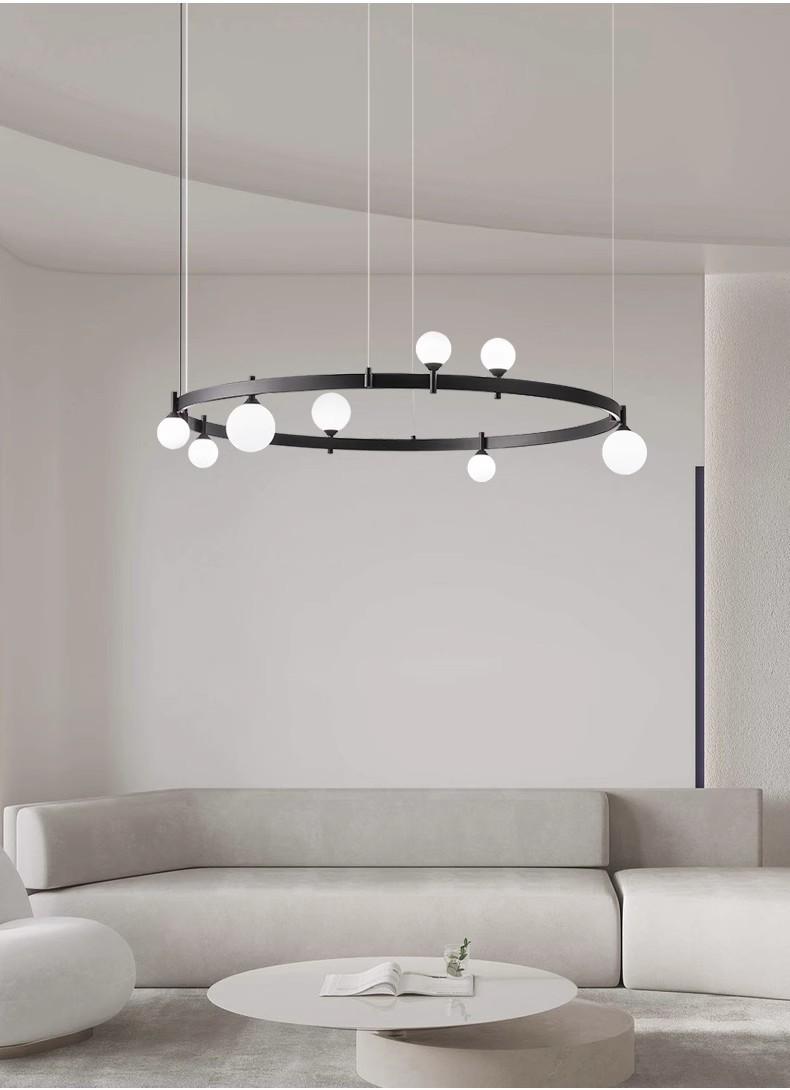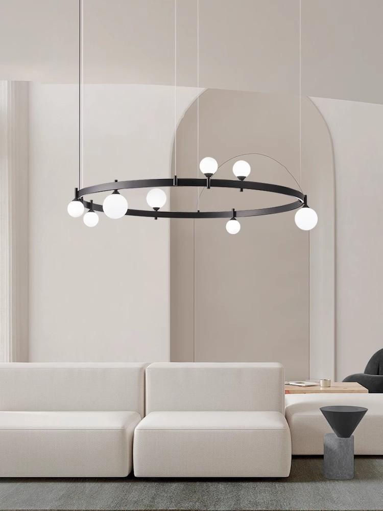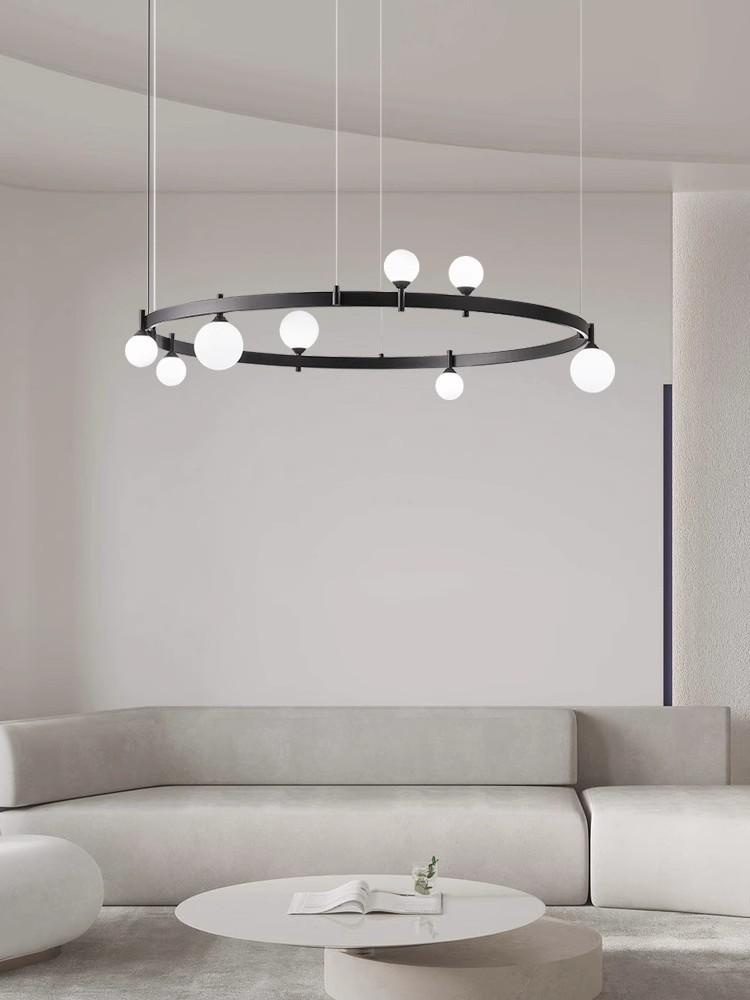 Lámpara de araña minimalista italiana para sala de estar, moderna, con anillo sencillo, para restaurante, bar, iluminación de diseñador, lámpara creativa con bola de cristal.