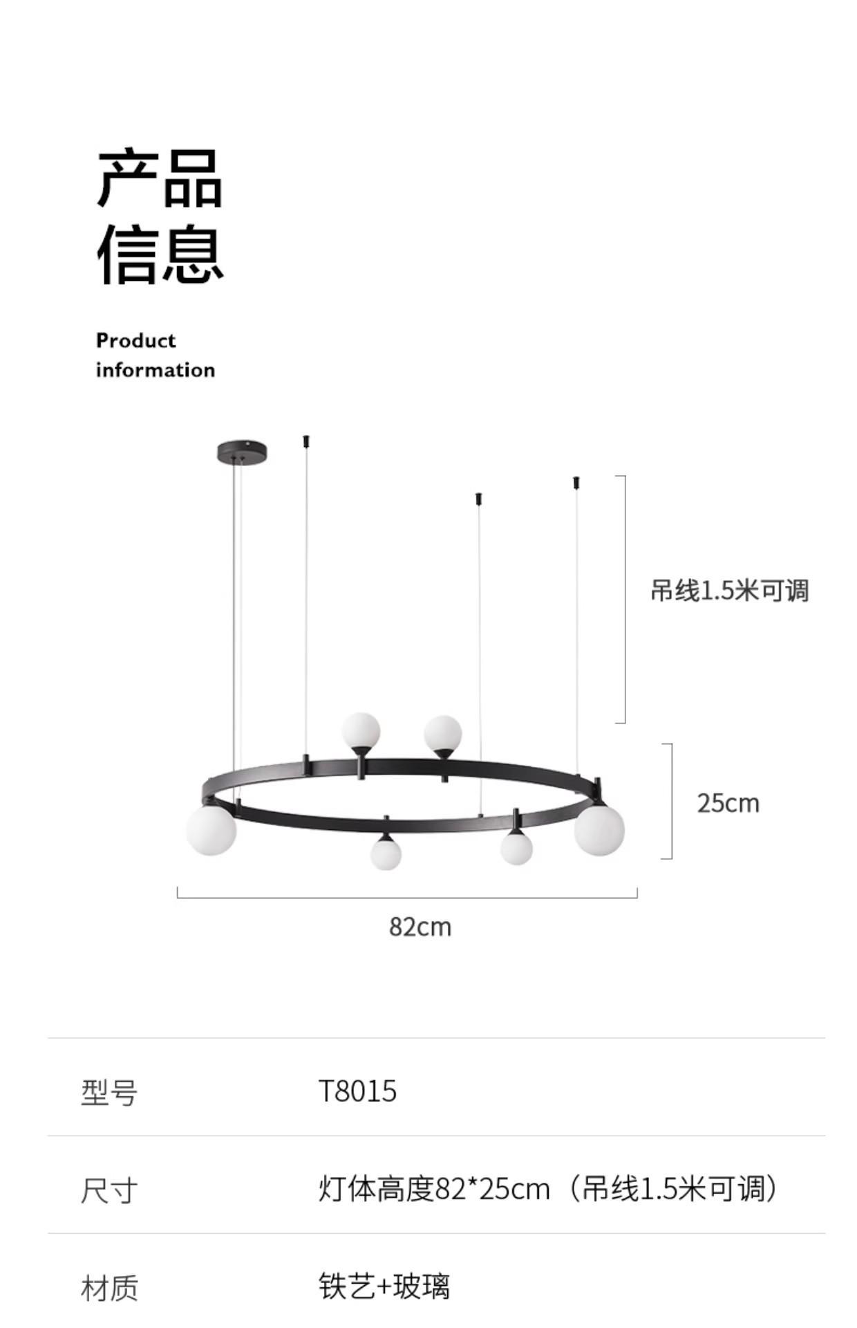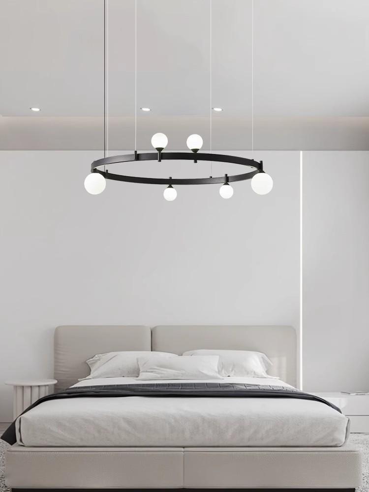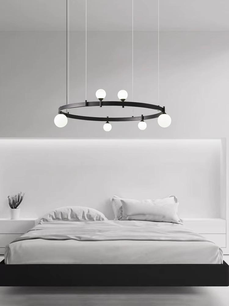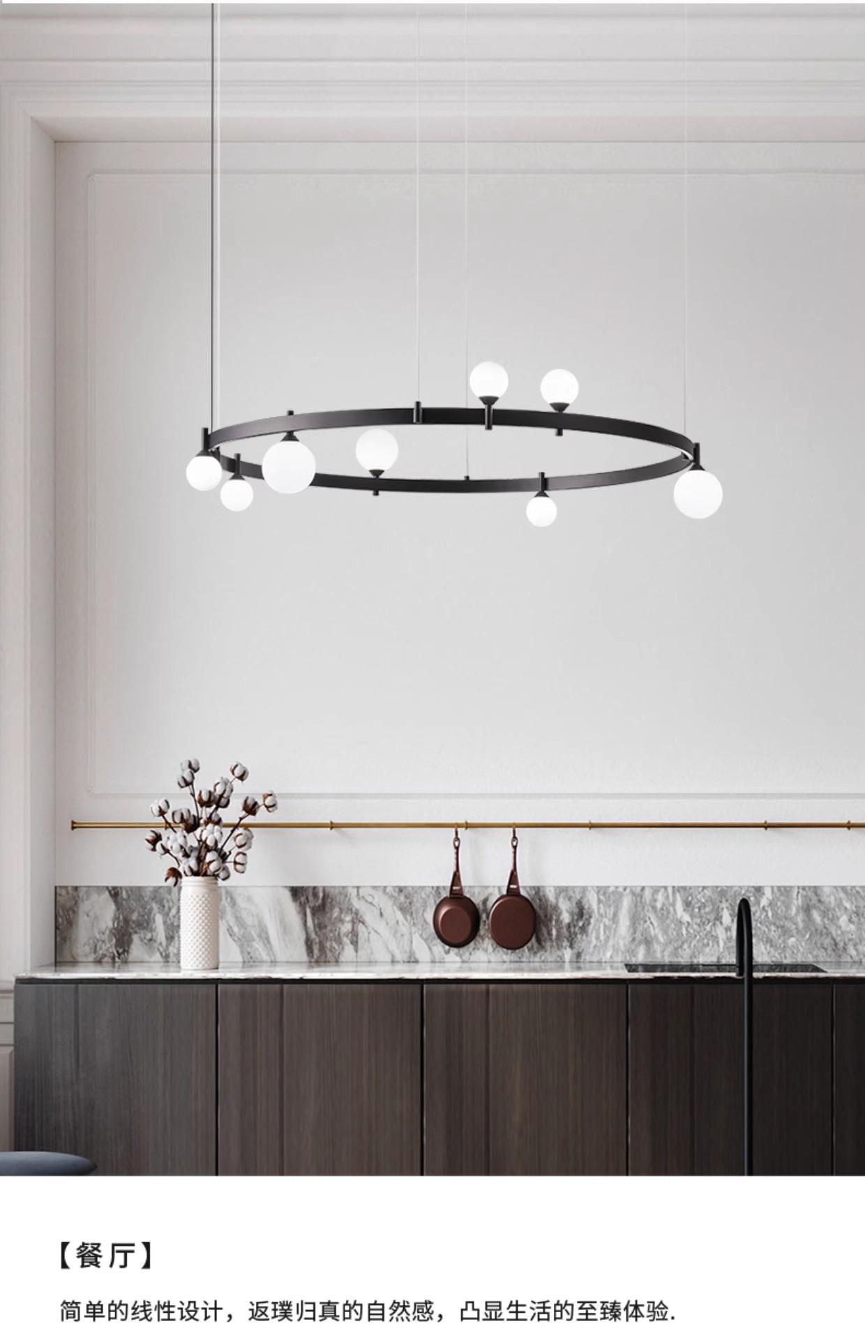Lámpara de araña minimalista italiana para sala de estar, moderna, con anillo sencillo, para restaurante, bar, iluminación de diseñador, lámpara creativa con bola de cristal.