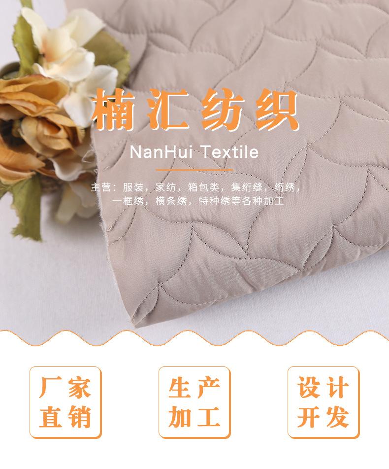 Shaoxing Keqiao Nanhui Textile Co., Ltd. está ubicada junto a la Ciudad Textil de China. Es una empresa dedicada a diversos procesos de confección de prendas de vestir, textiles para el hogar, bolsos, acolchado, bordado acolchado, bordado de un marco, bordado de rayas horizontales, bordado especial, etc. La empresa se adhiere a la filosofía empresarial de "excelente equipo, excelente calidad, excelente servicio, cooperación sincera y desarrollo común", mejorando constantemente el equipo y perfeccionándose. Y puede diseñar y desarrollar según los patrones proporcionados por los clientes para satisfacer las necesidades de los clientes.