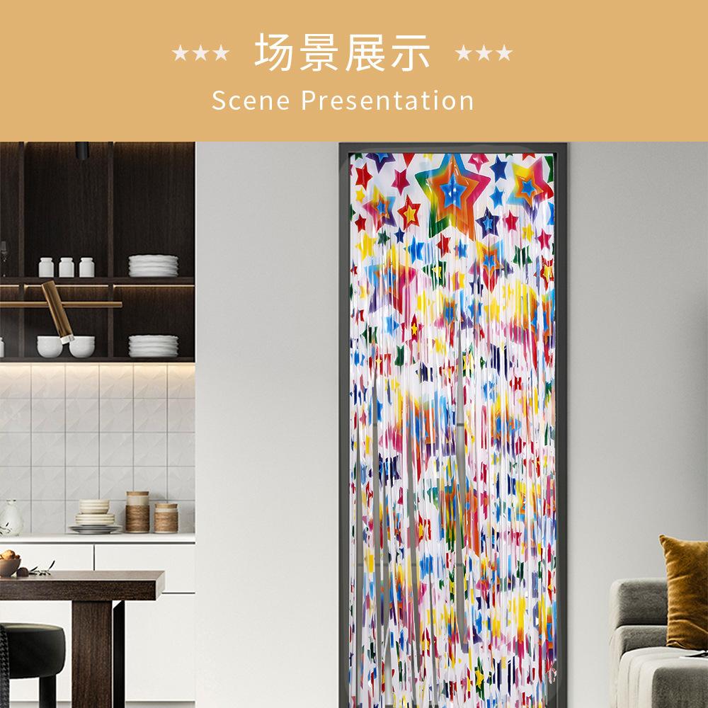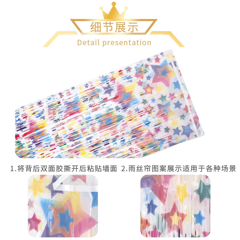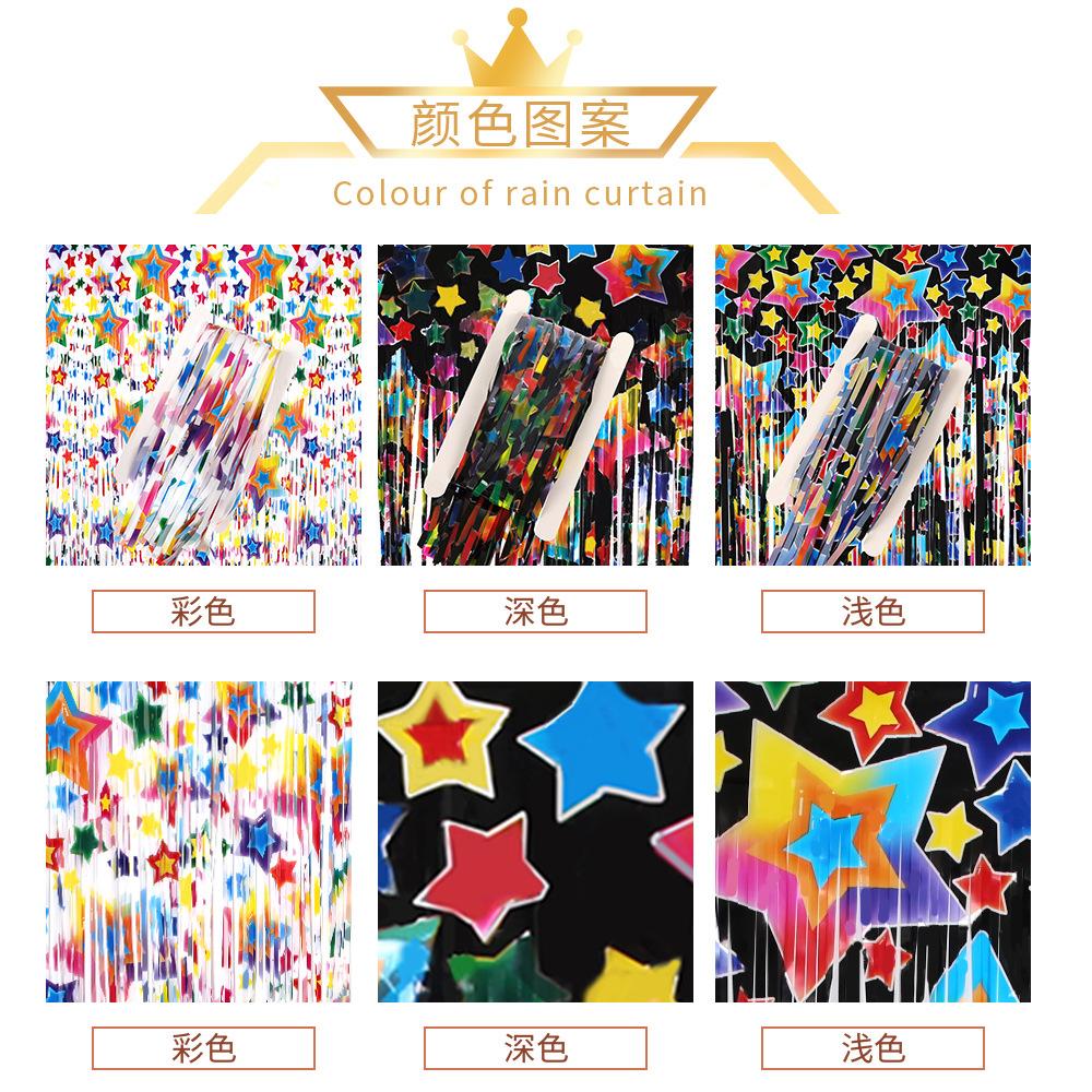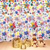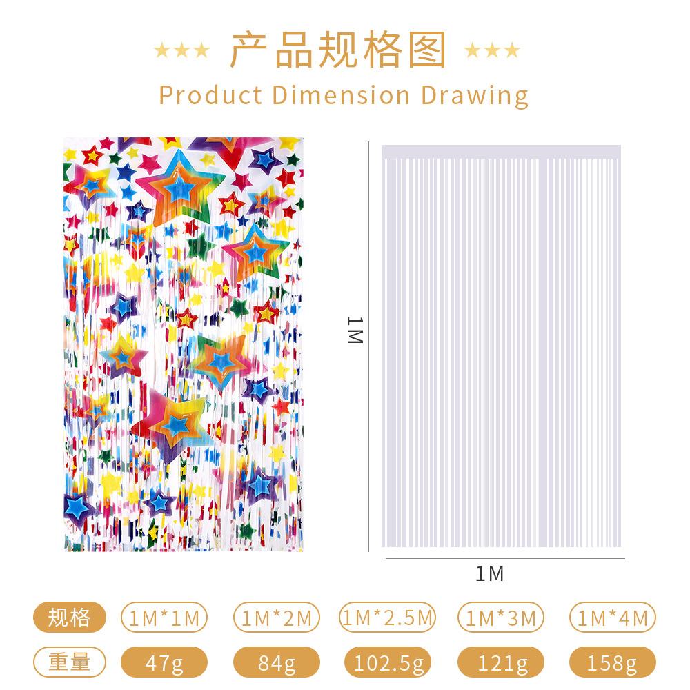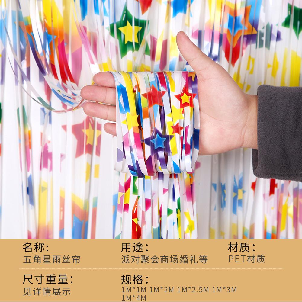 Cortina de lluvia de estrellas de cinco puntas con borlas, ideal para fiestas de cumpleaños de bebés.