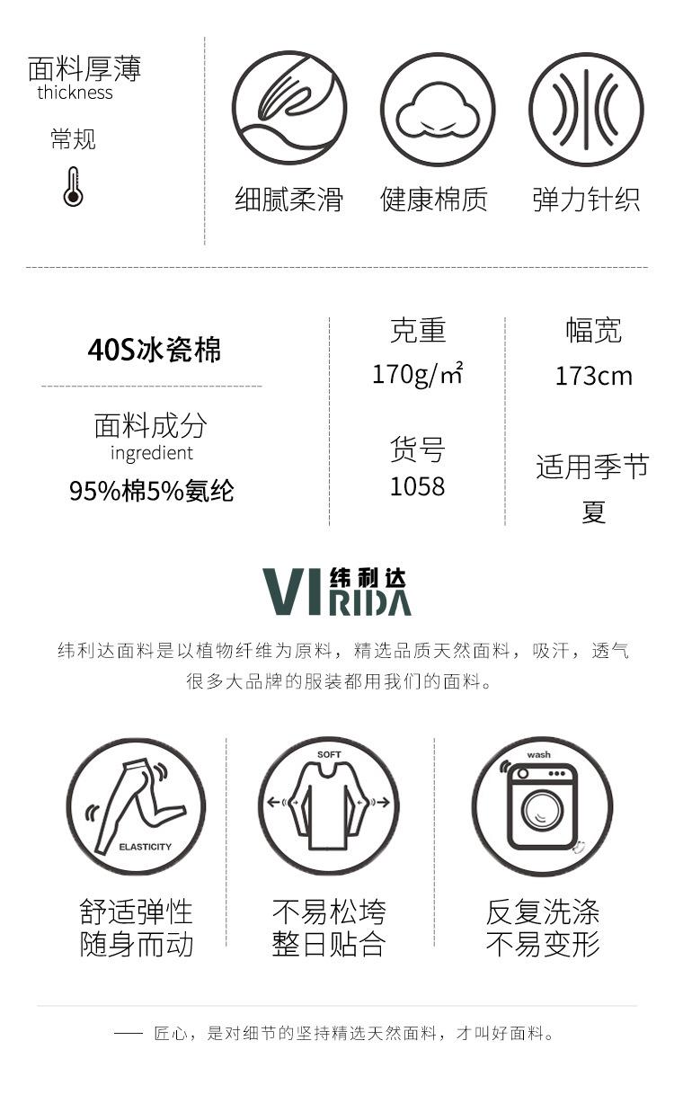 Algodón porcelana de hielo jersey de algodón 40s tejido de tacto frío 170g tejido de punto elástico tela para camiseta interior de primavera y verano