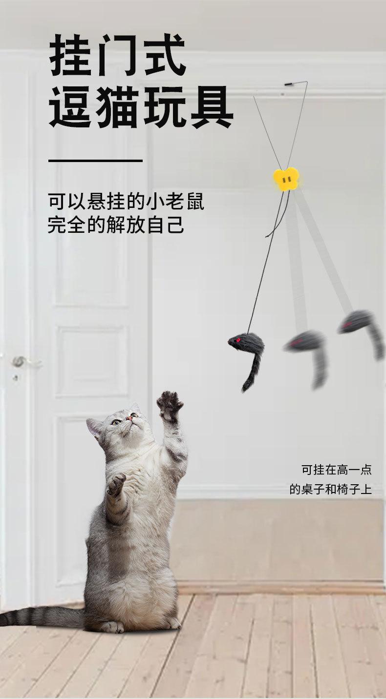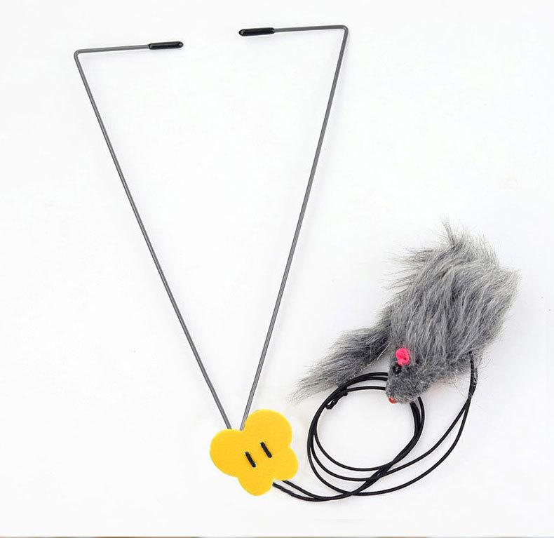 Suministros para mascotas juguete para gato colgante de puerta palo para gato con gancho triangular retráctil ajustable colgante de puerta juguete para gato ratón para burlar al gato 6