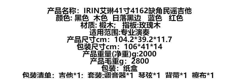 Guitarra IRIN de 41 pulgadas para principiantes, guitarra acústica de madera para principiantes, venta al por mayor