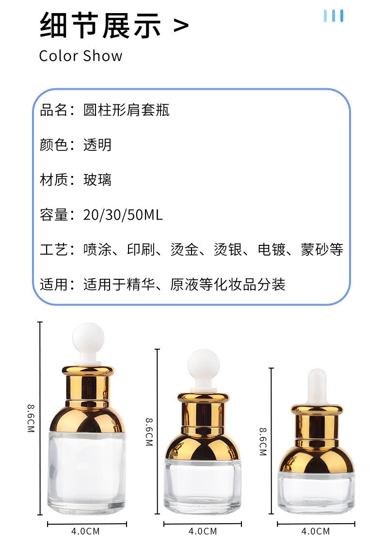 Botella de esencia de 30 ml, cuentagotas para cosméticos, botella de vidrio para aceite esencial, botella de vidrio para emulsión de agua de 20 ml, venta al por mayor