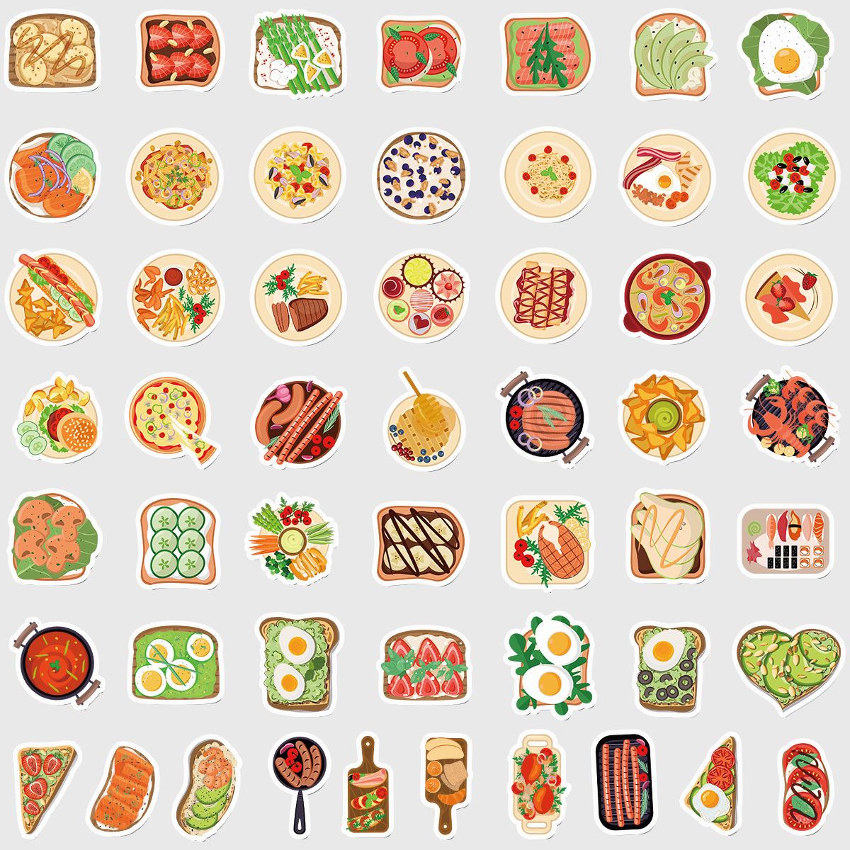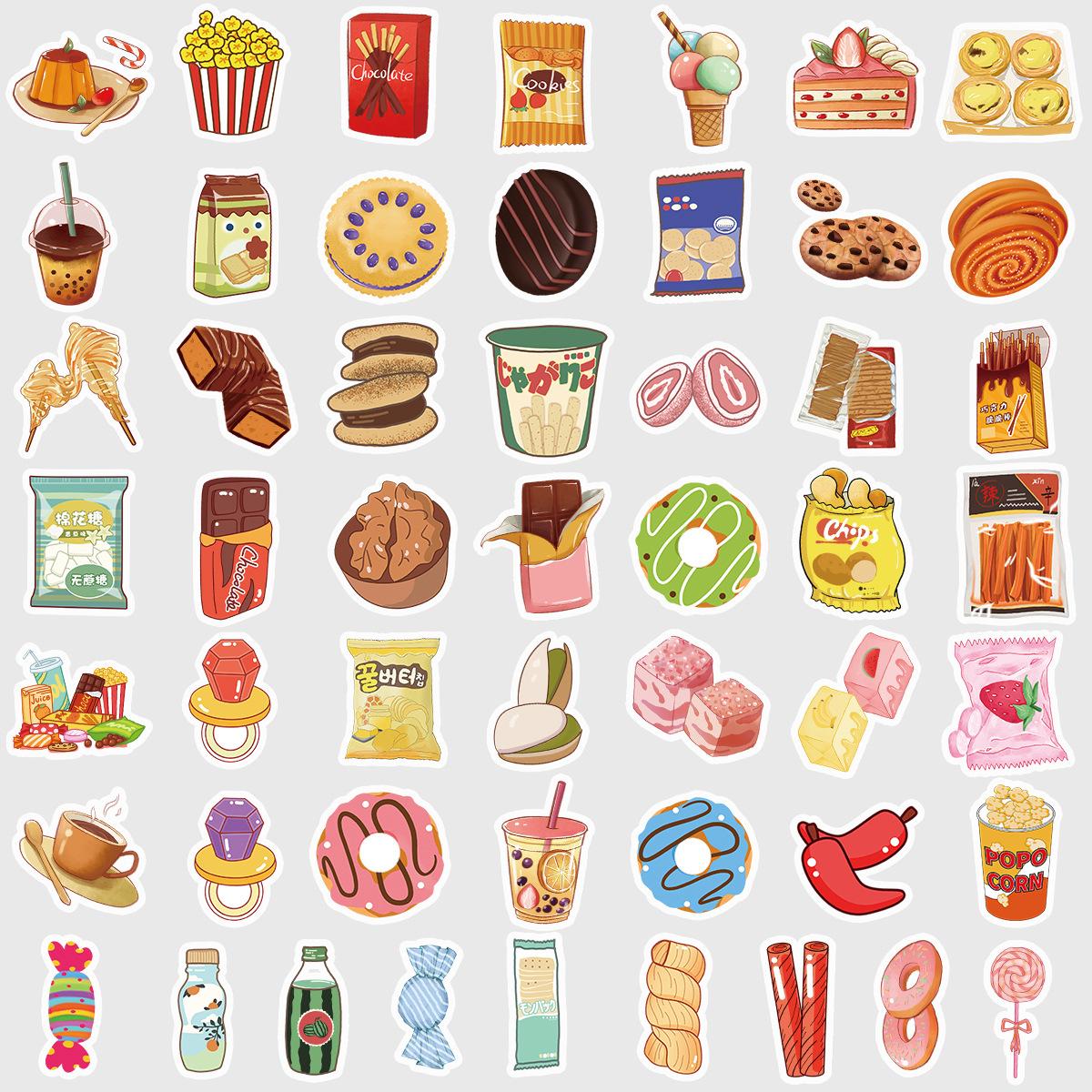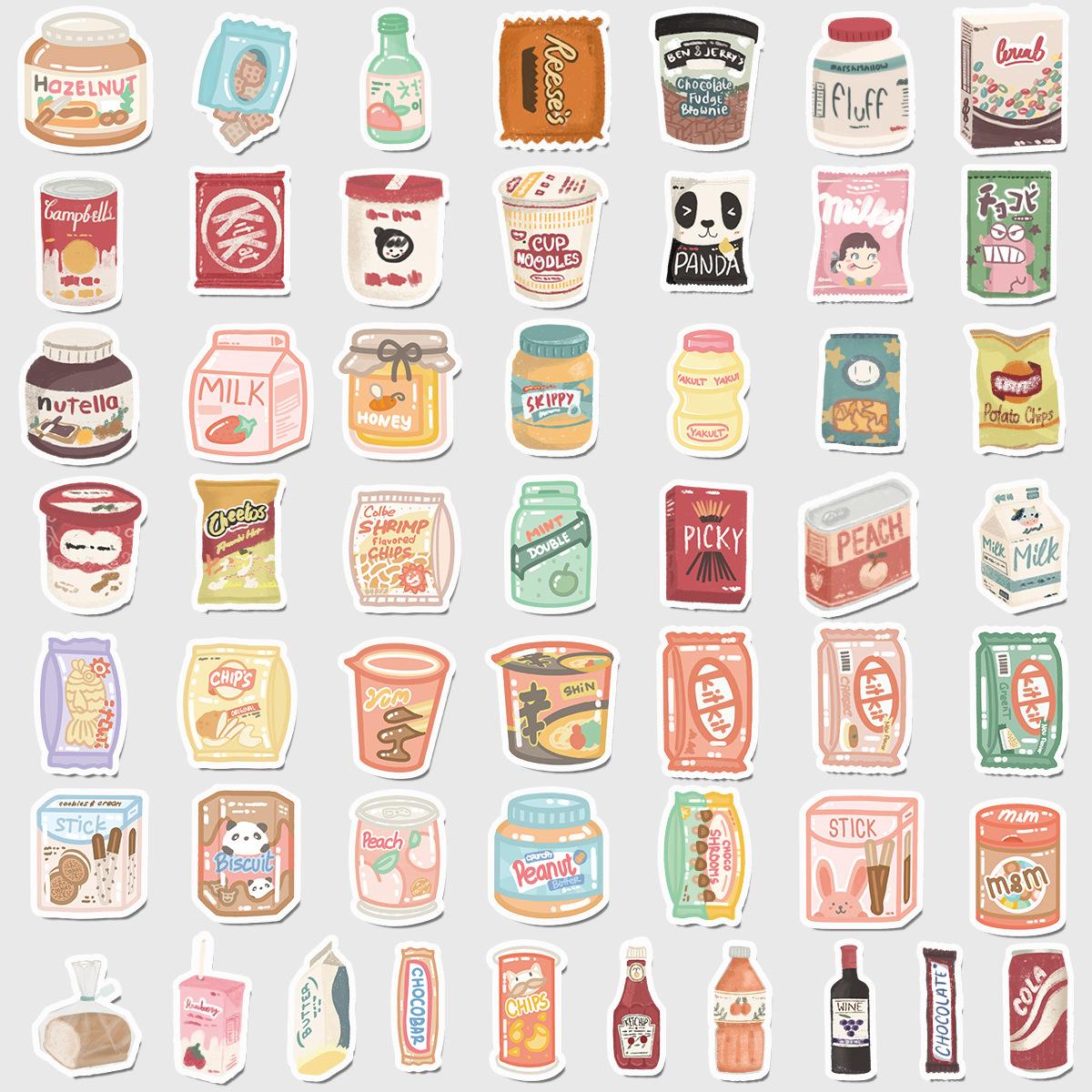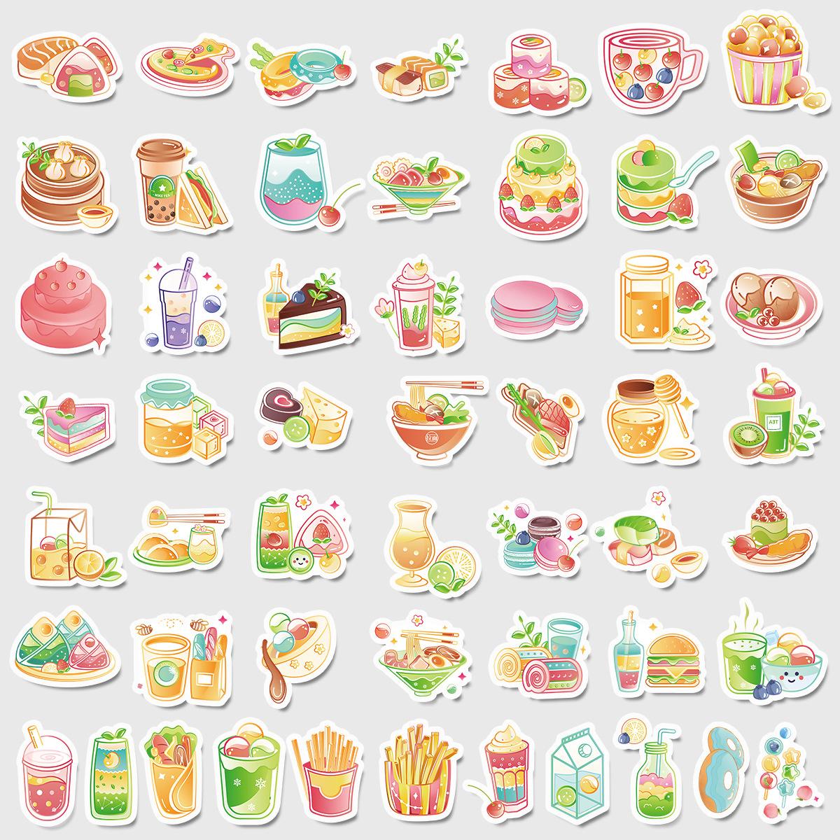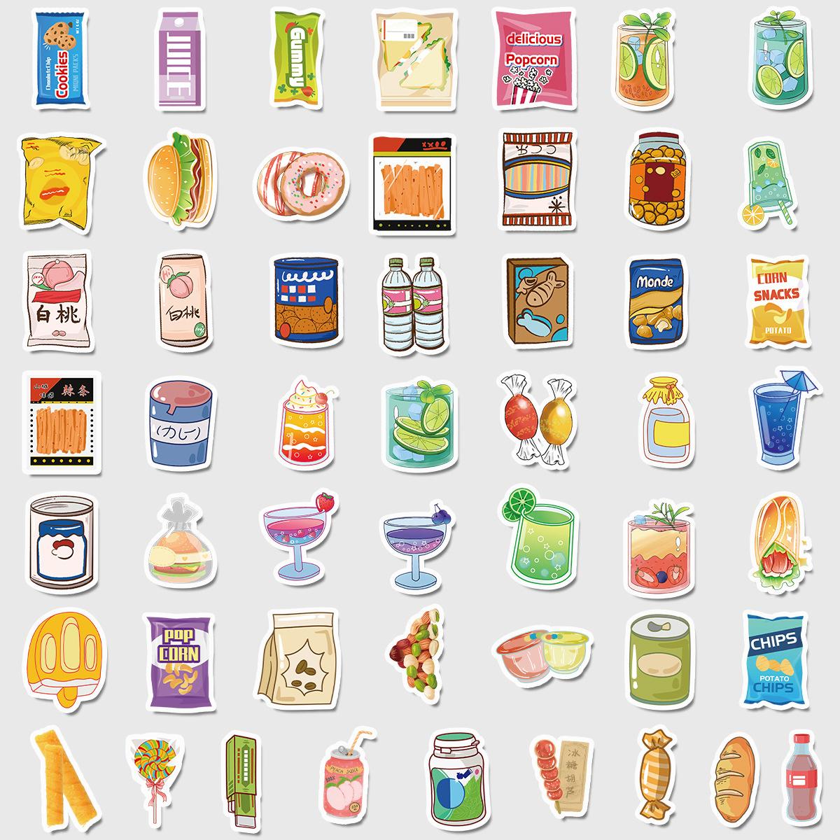 50 pegatinas de grafiti de comida lindas transfronterizas, pegatinas decorativas impermeables para equipaje, pegatinas de cuenta de mano DIY para niños