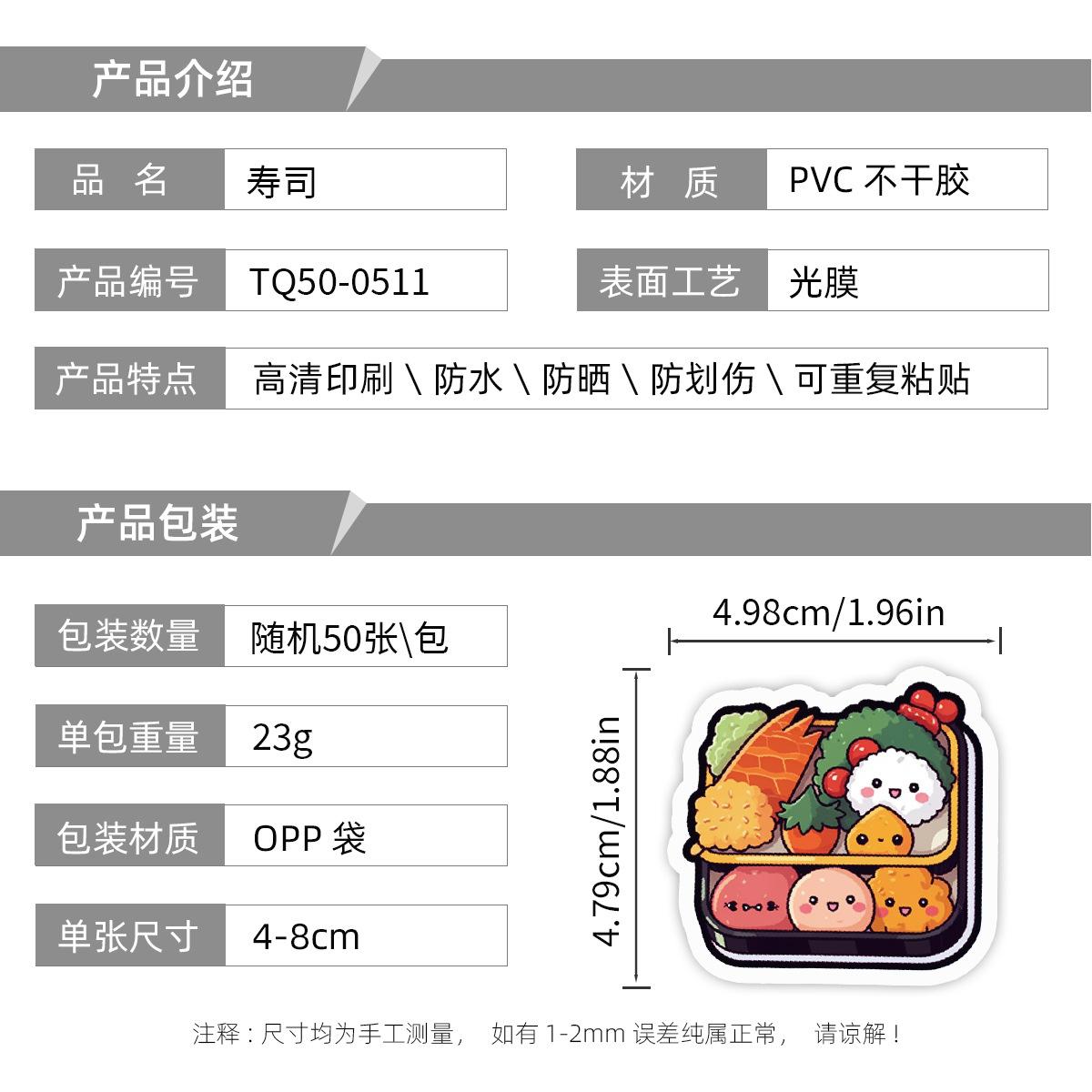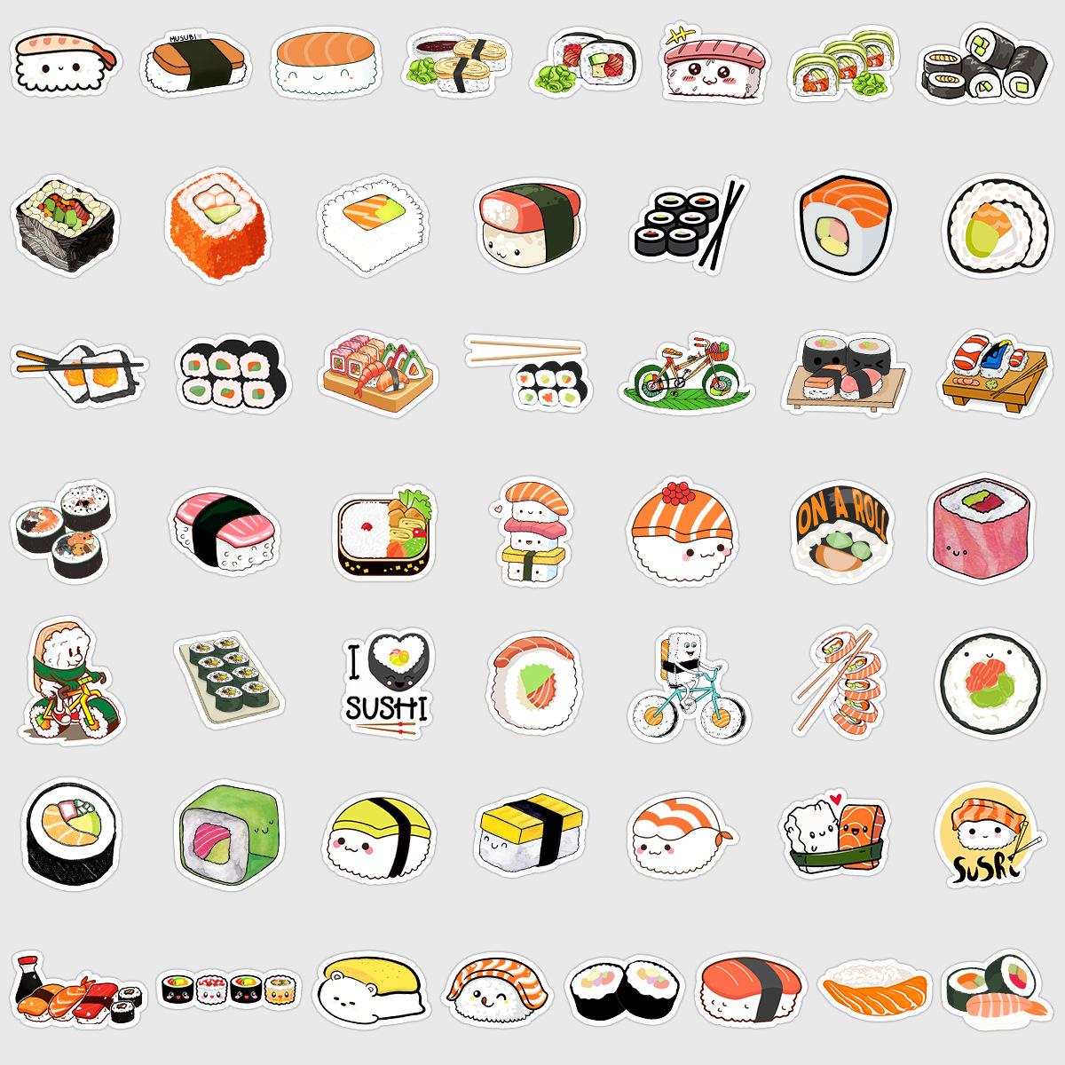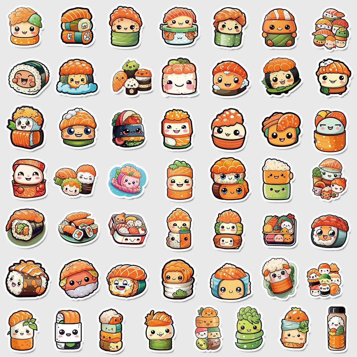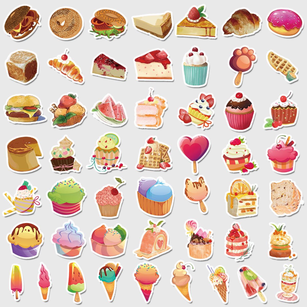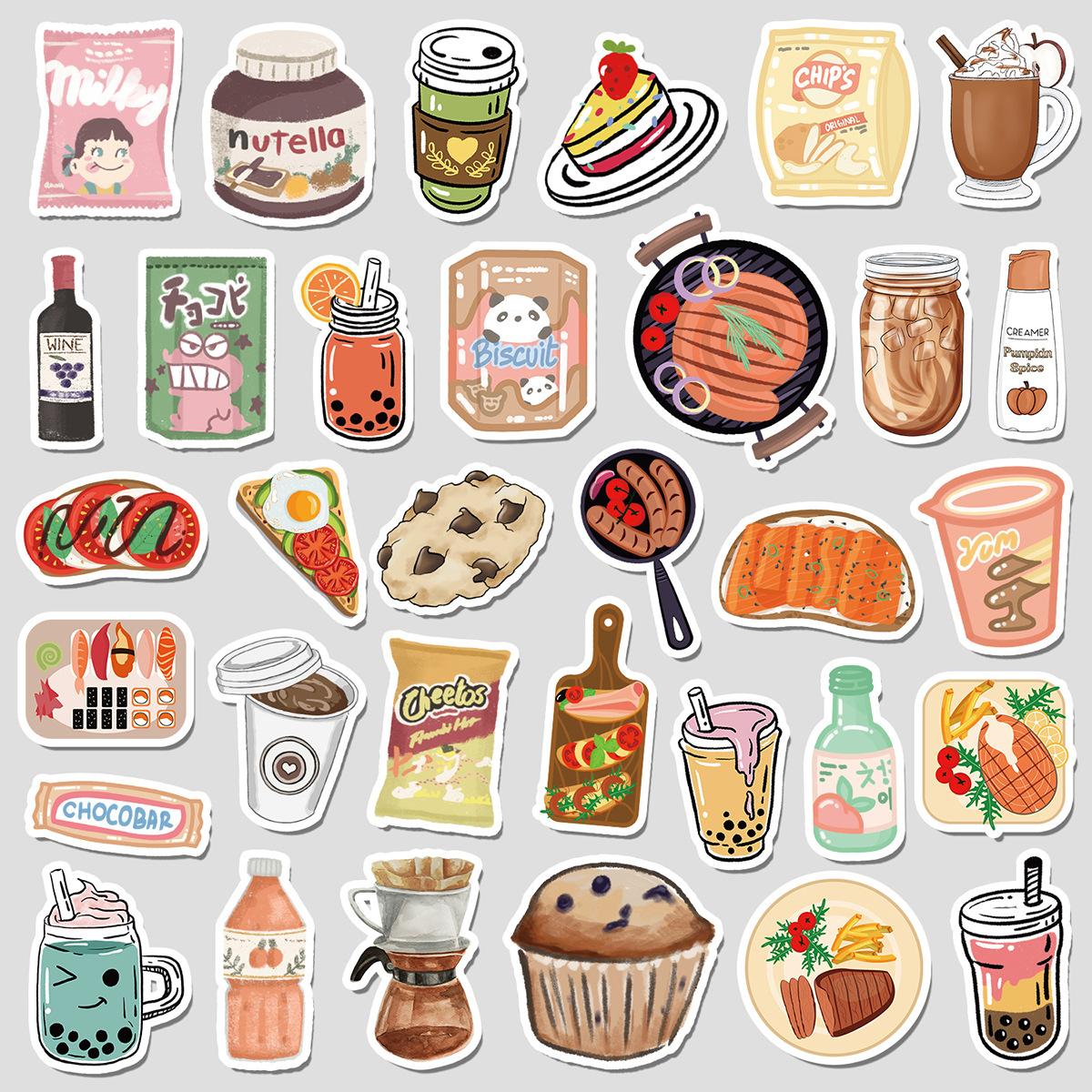 50 pegatinas de grafiti de comida lindas transfronterizas, pegatinas decorativas impermeables para equipaje, pegatinas de cuenta de mano DIY para niños