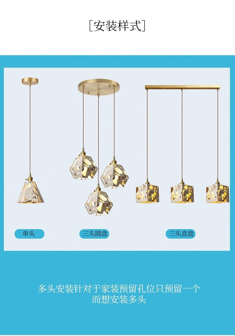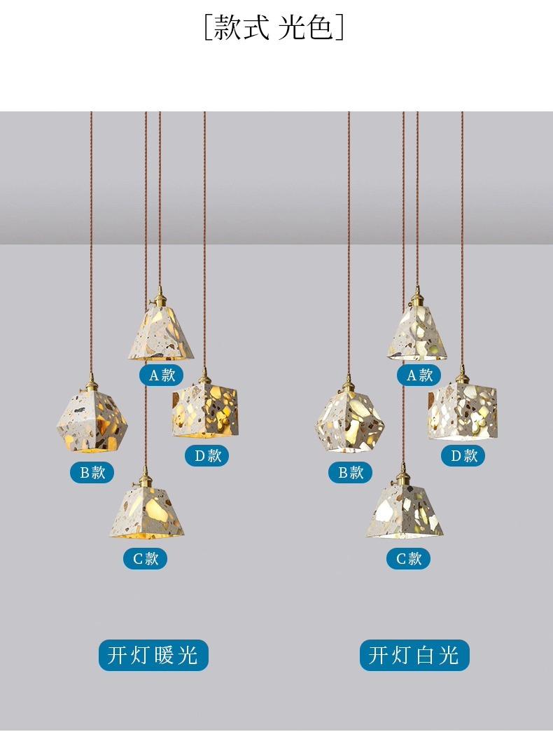 Lámpara de araña transparente de mármol terrazo con personalidad creativa nórdica para bar, restaurante, lámpara de noche de dormitorio de estilo industrial