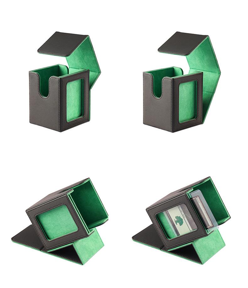 Caja de almacenamiento para tarjetas inteligentes, de cuero PU de alta calidad, mejorada, con ventana de inserción vertical, para tarjetas de juego y tarjetas rígidas