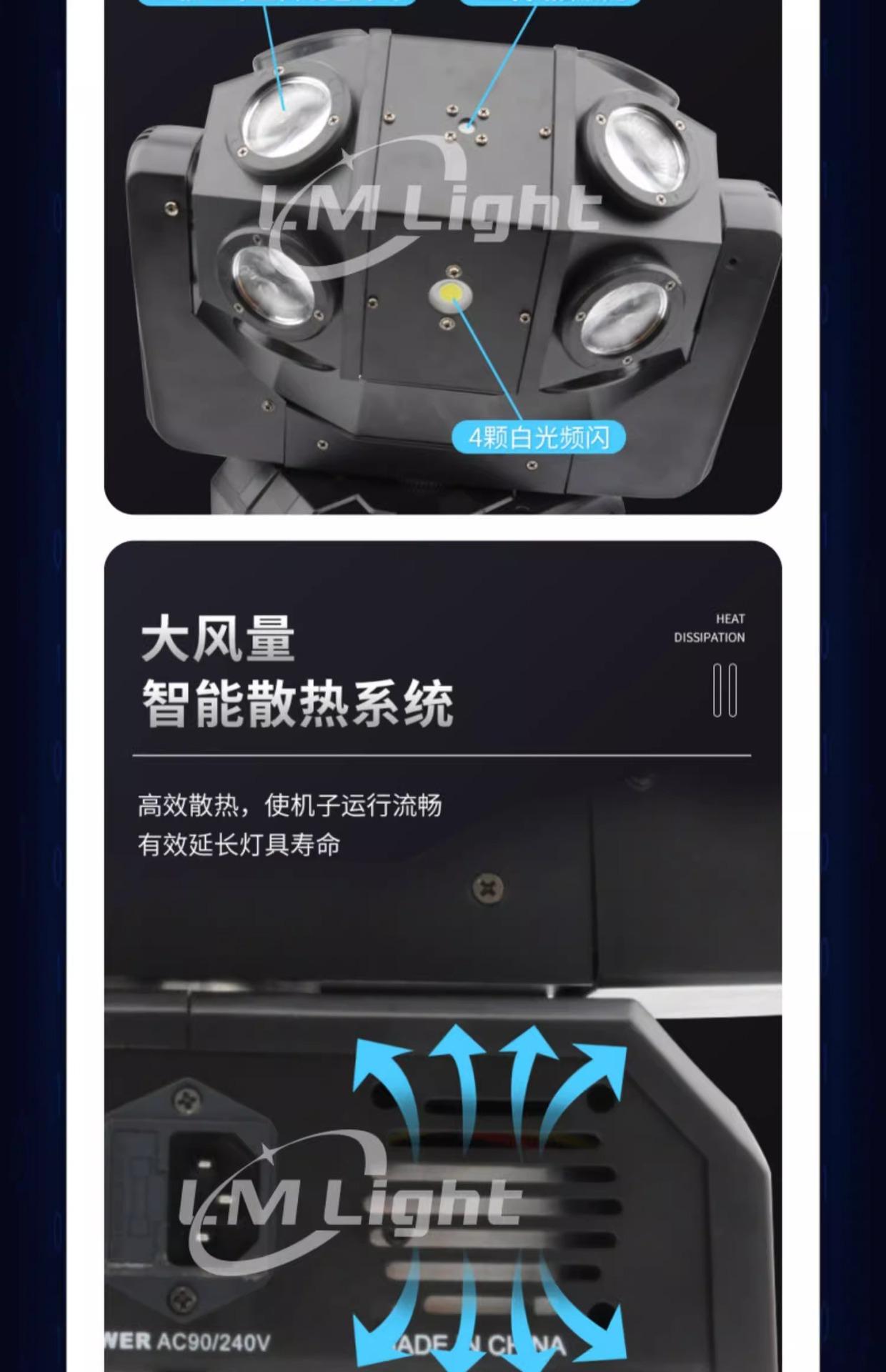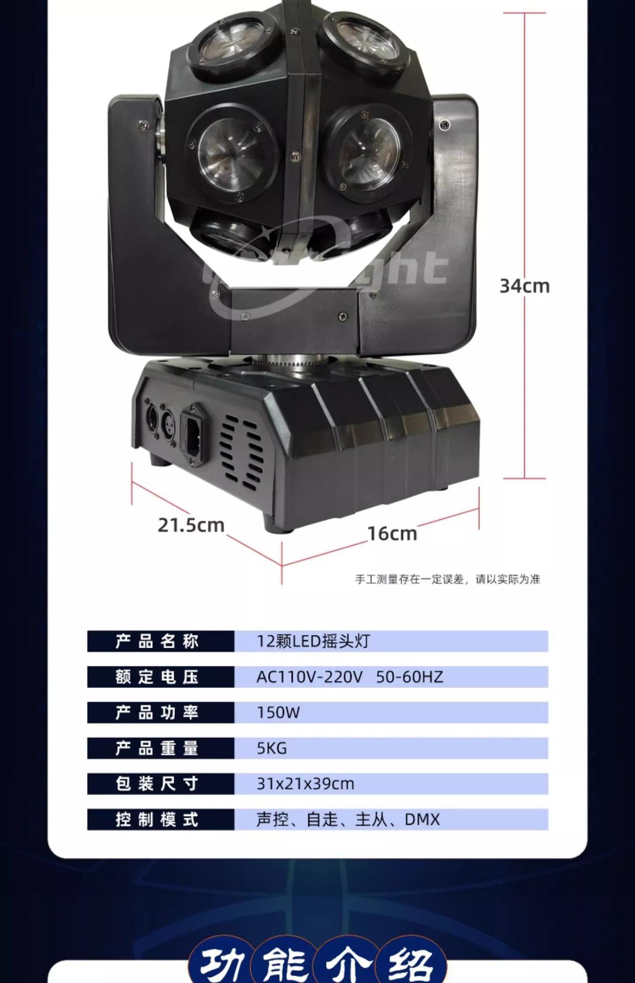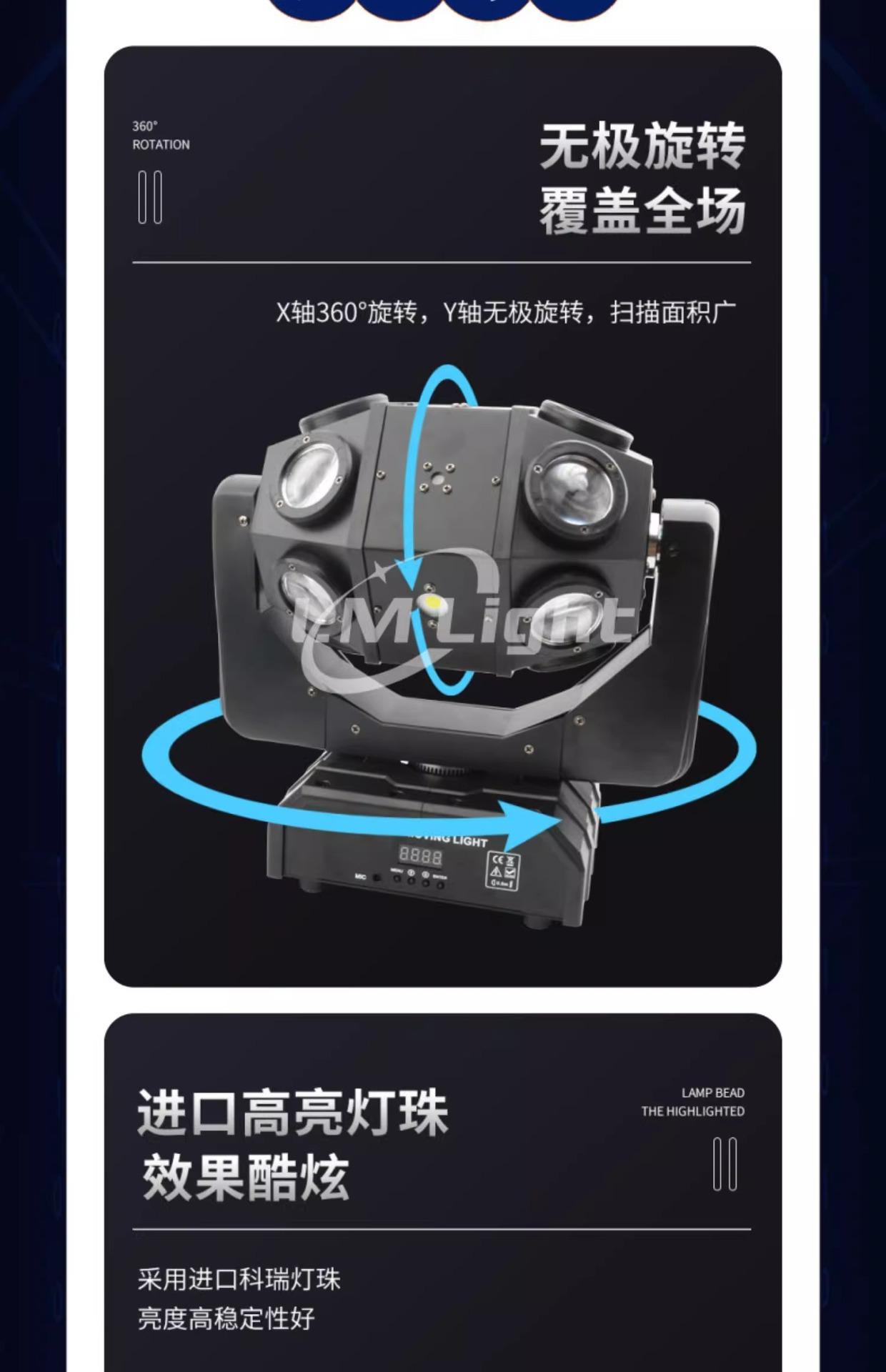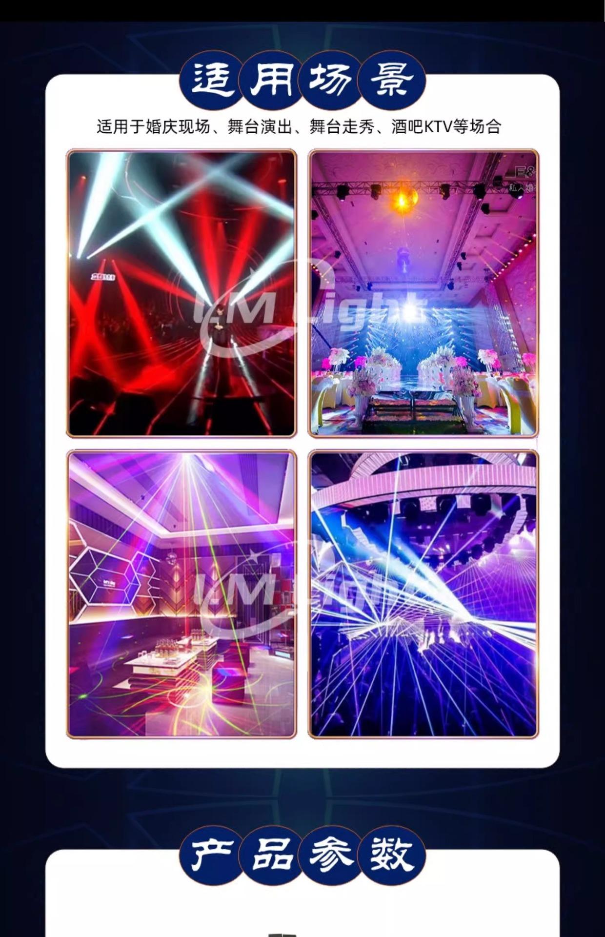 12 single ball beam lights, 12 double ball beam lights, 12 double ball beam lights + laser
