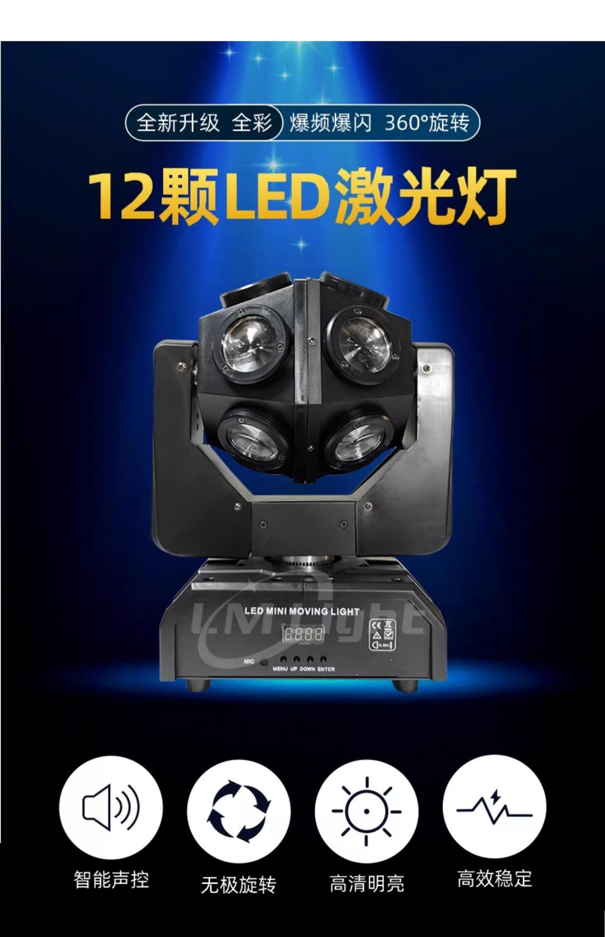 Barra de luz LED con cabezal móvil para KTV, luz de escenario con flash de discoteca, láser giratorio de colores controlado por voz, 12 luces LED láser