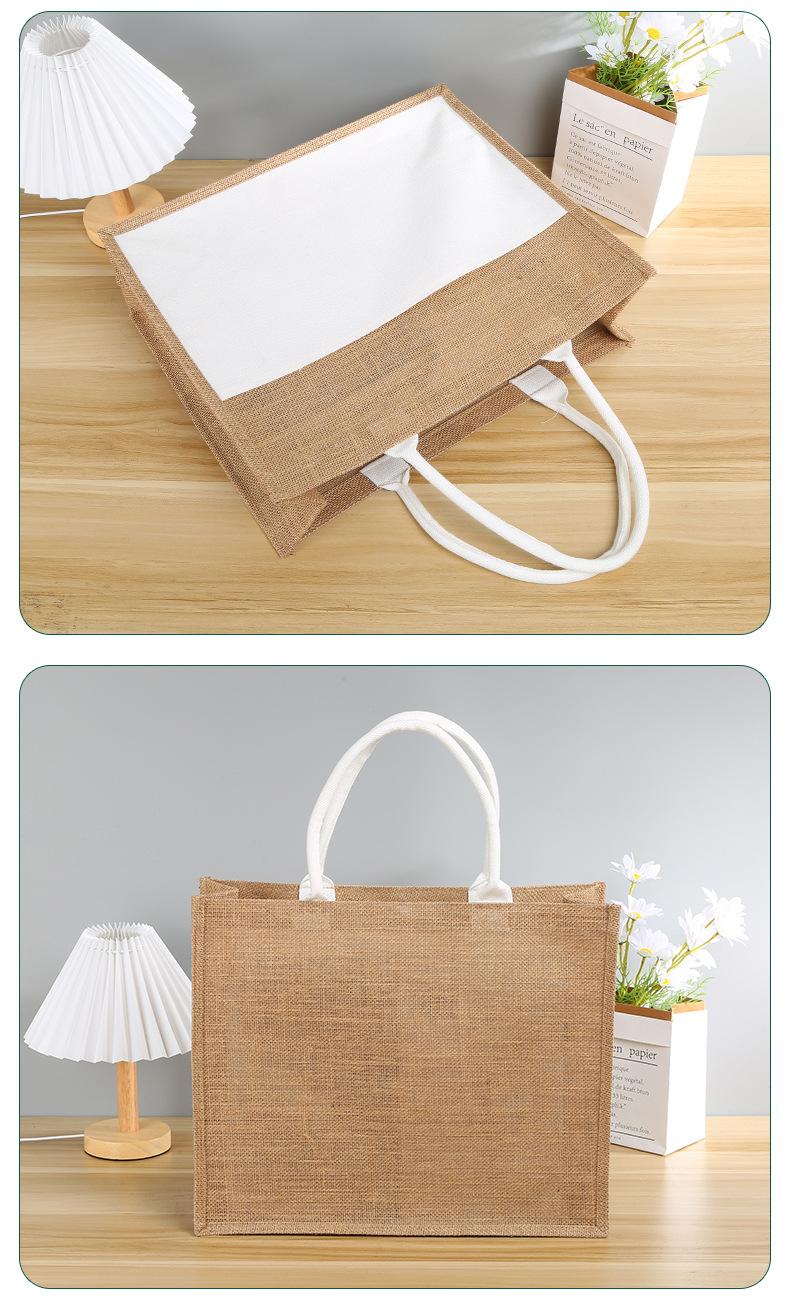Bolso de yute al por mayor en stock, bolsa cosmética, bolsa de compras, bolsa de lino de moda, bolsa de lino, logotipo personalizado impreso