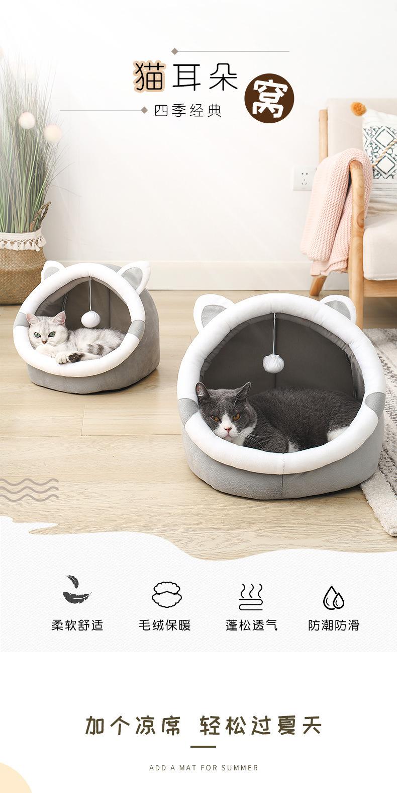 Nido para gatos, nido para perros cerrado, extraíble y lavable, nido para mascotas, tapete de verano para perros, casa universal para gatos para las cuatro estaciones, suministros para mascotas