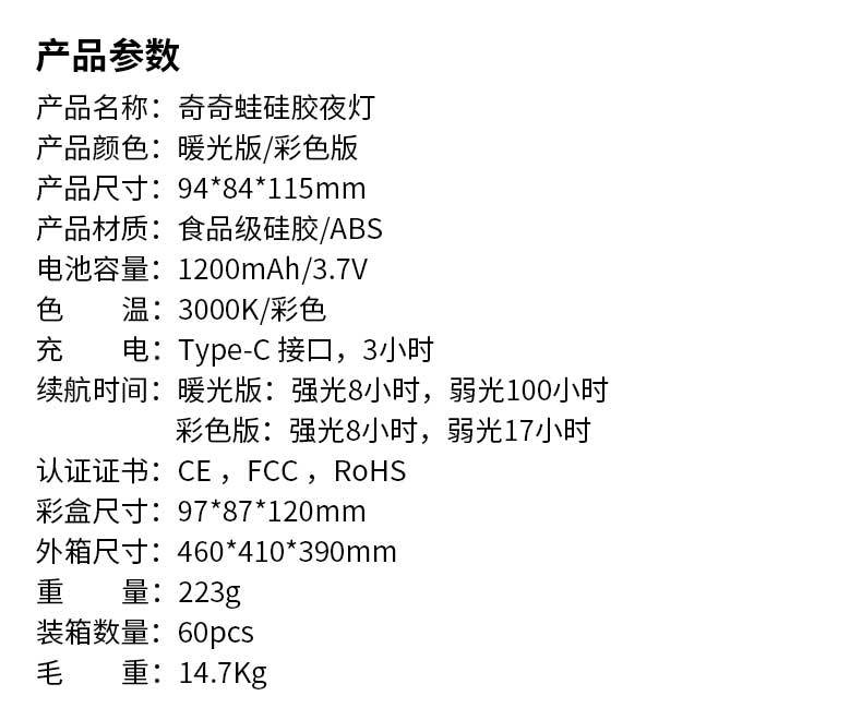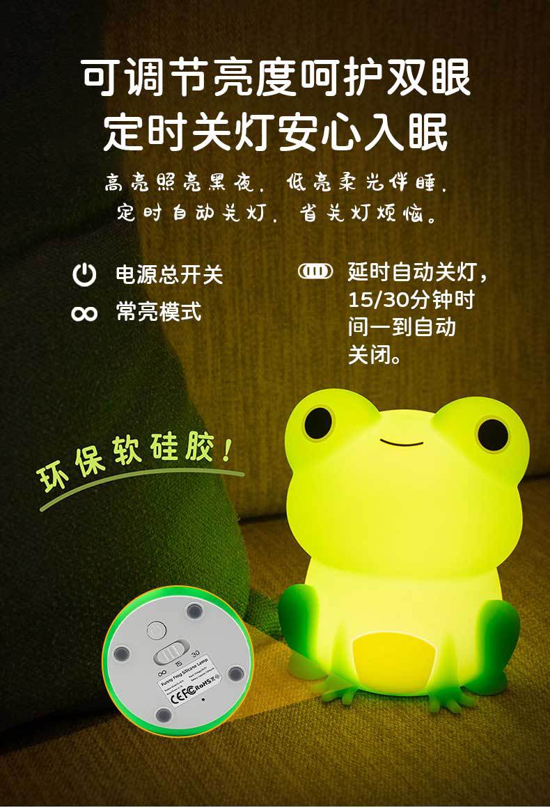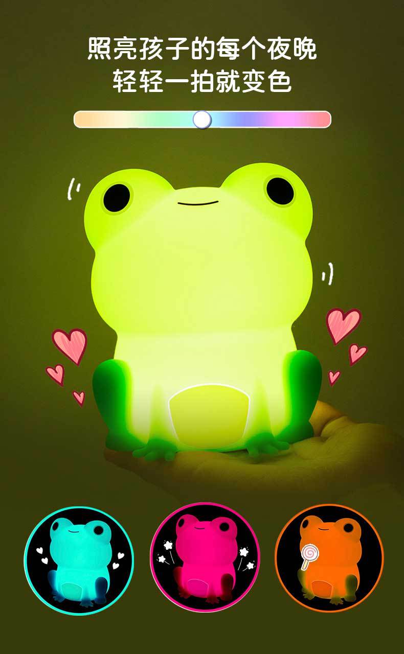 Luz de Noche LED de Silicona Rana Qiqi Regalo Luz Ambiental Luz Táctil Adorno de Protección Ocular Lámpara de Mesita de Noche Luz Nocturna Luz Cálida