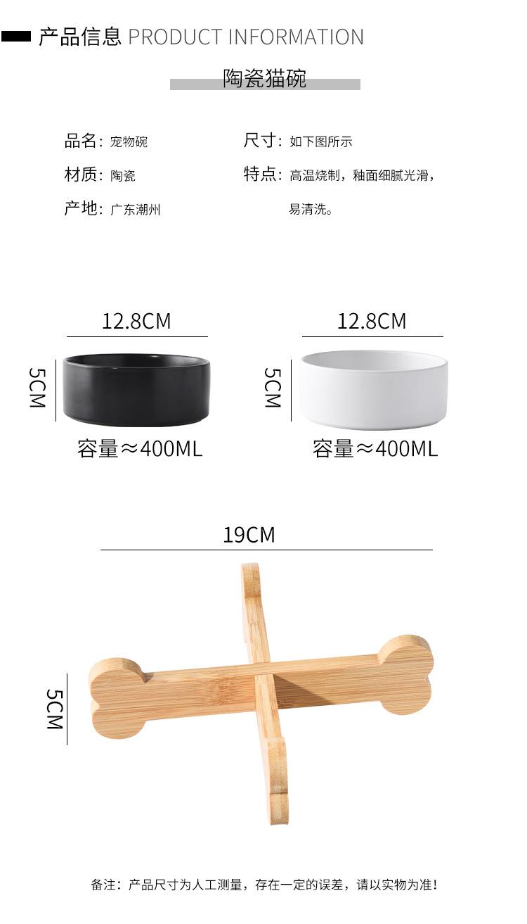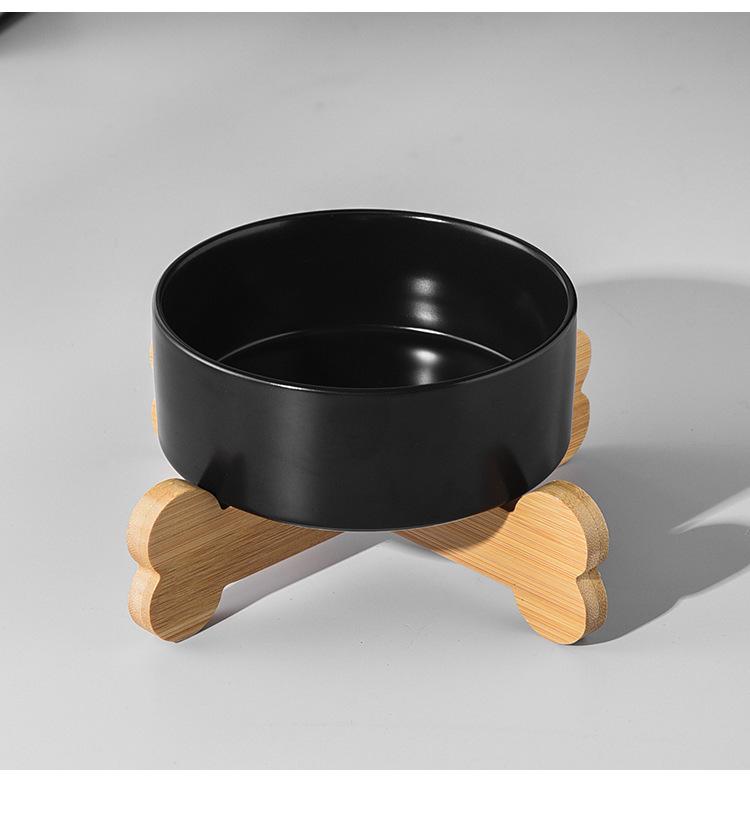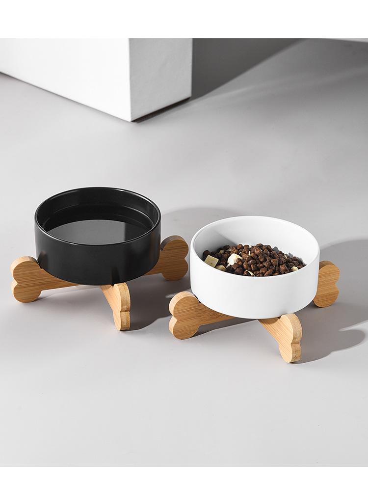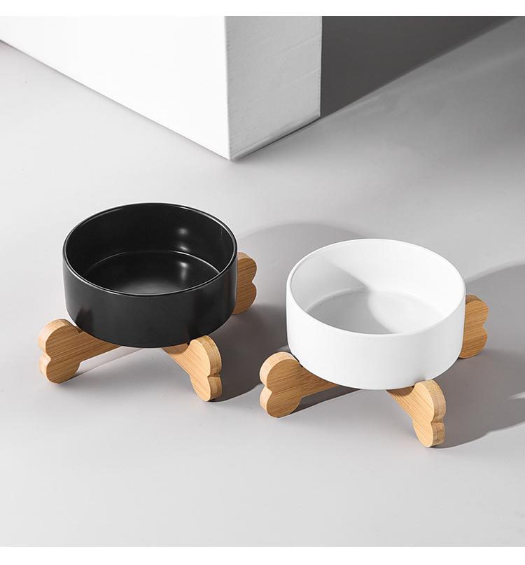 Straight bowl White + bone single wooden frame, Straight bowl black + bone single wooden frame