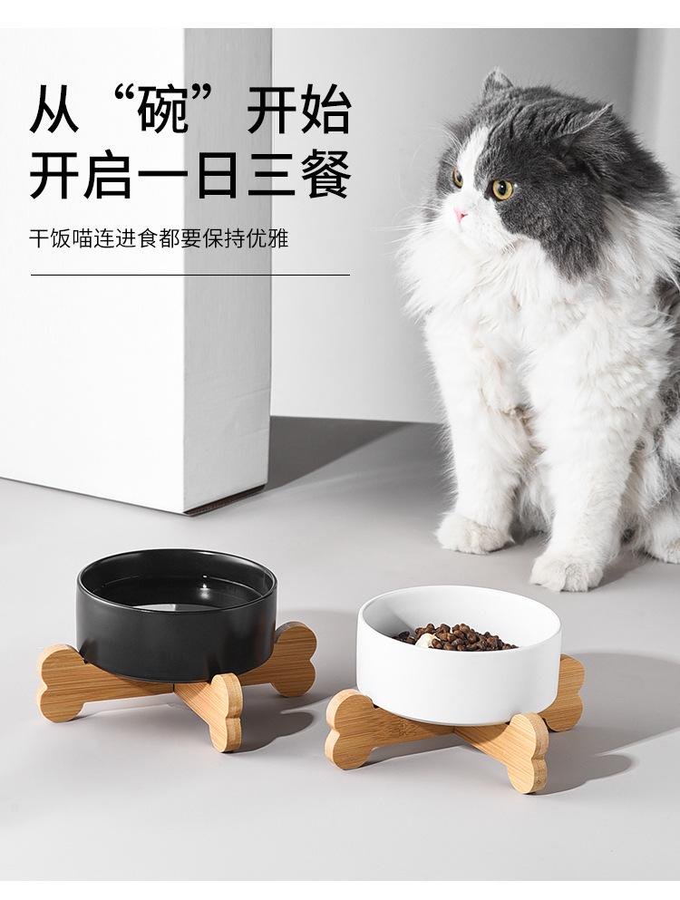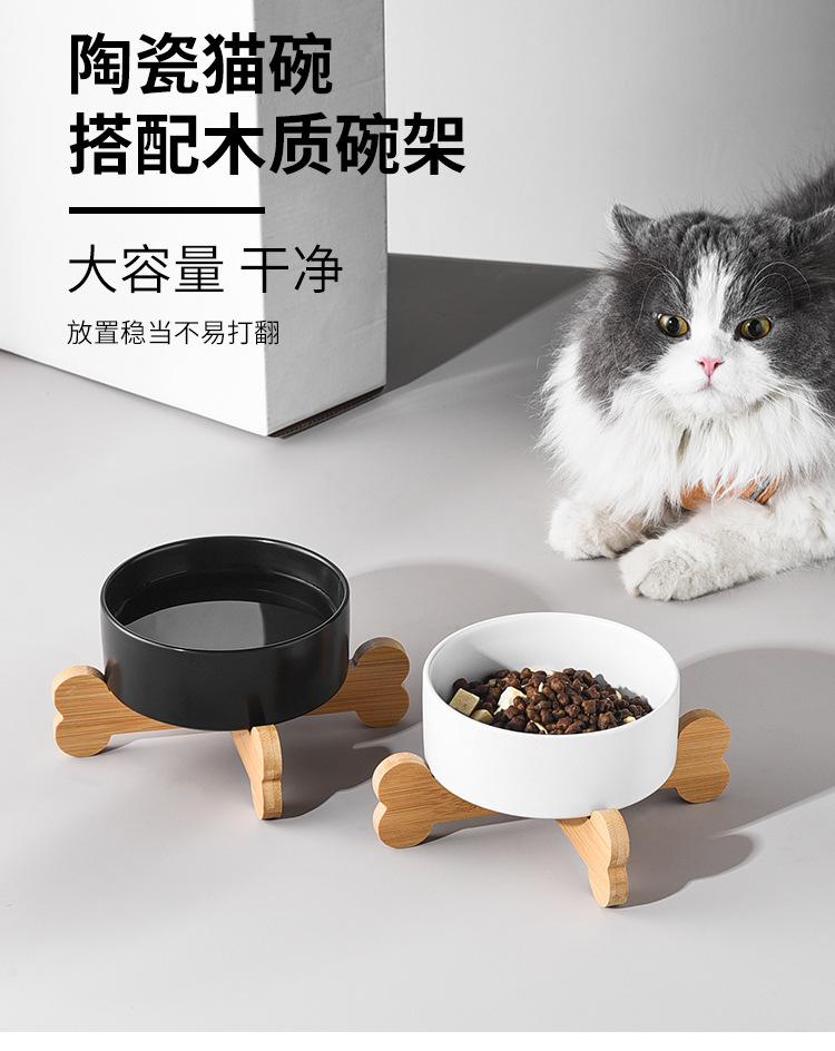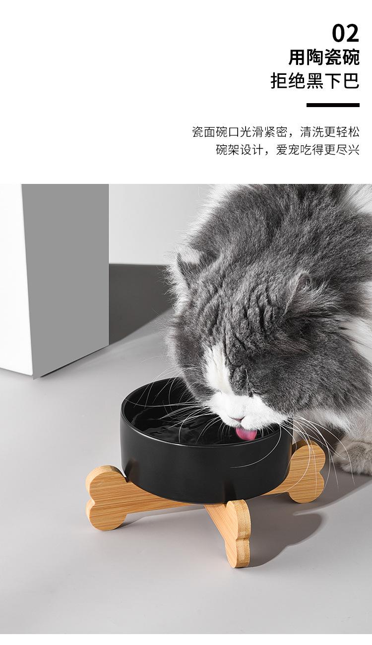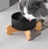 Cuenco negro para gatos, cuenco de cerámica para comida de gatos, cuenco para arroz, cuenco inclinado con patas altas y protección antigolpes para el cuello.