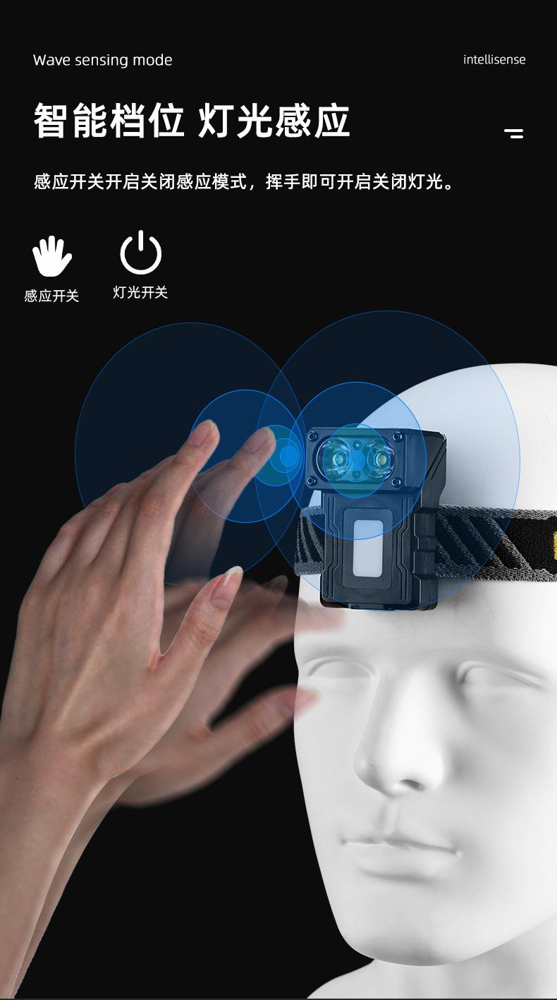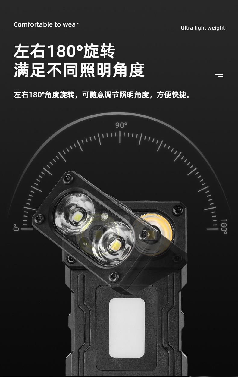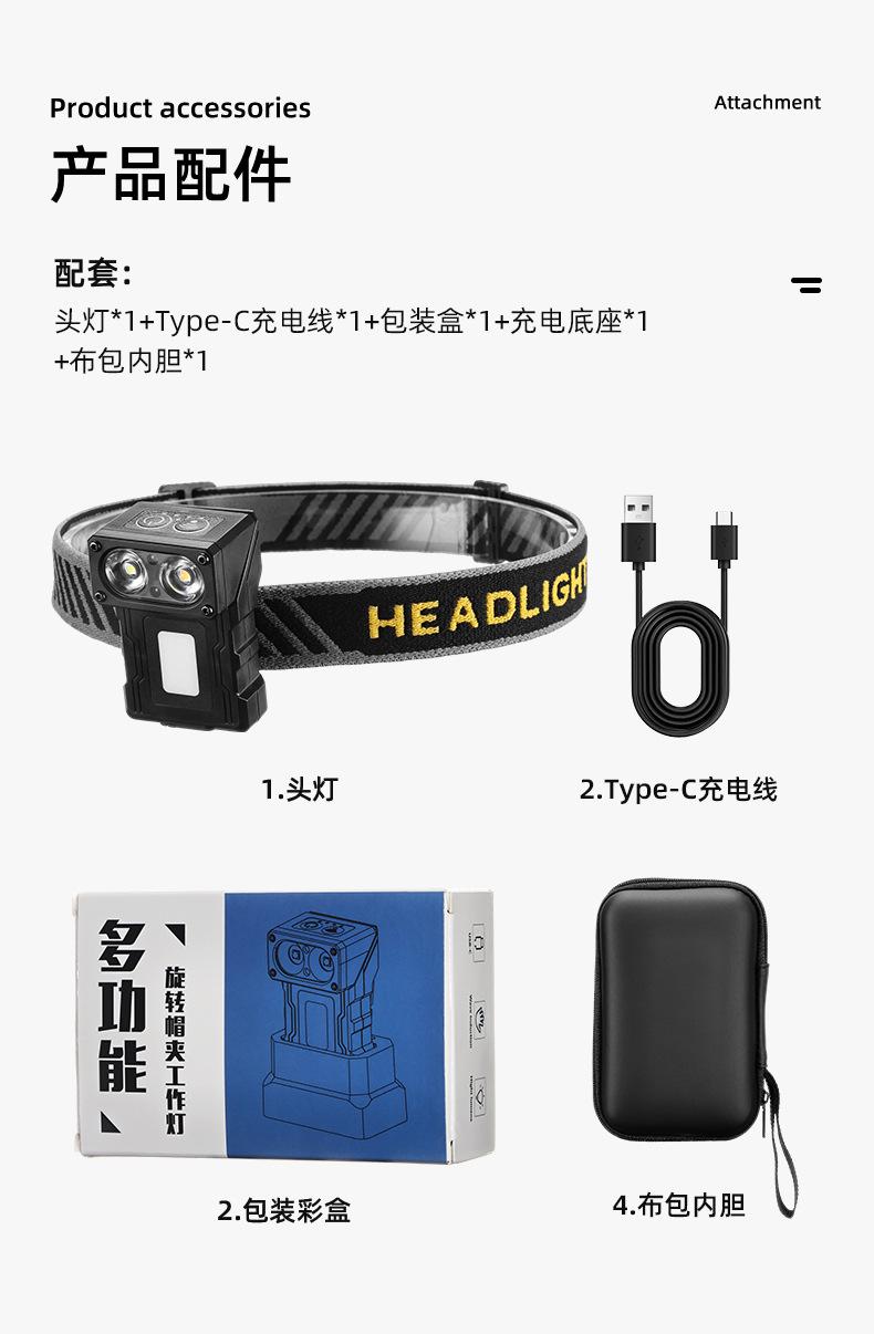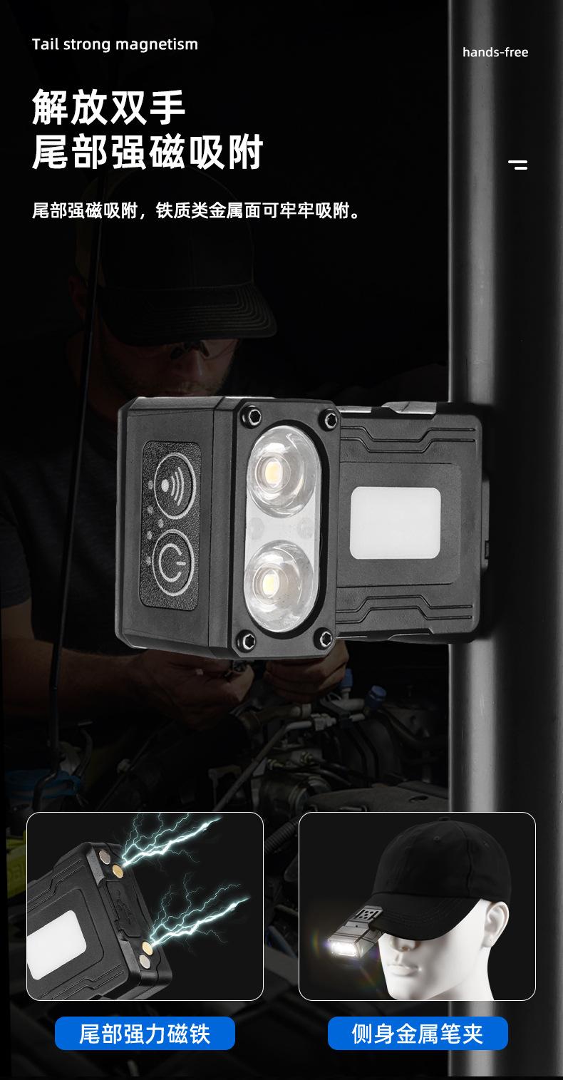 Nuevo faro portátil multifuncional transfronterizo con inducción de onda de luz fuerte, carga rápida tipo C, clip de gorra giratorio, luz de trabajo