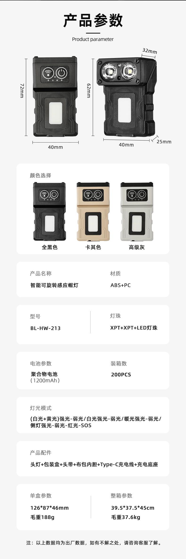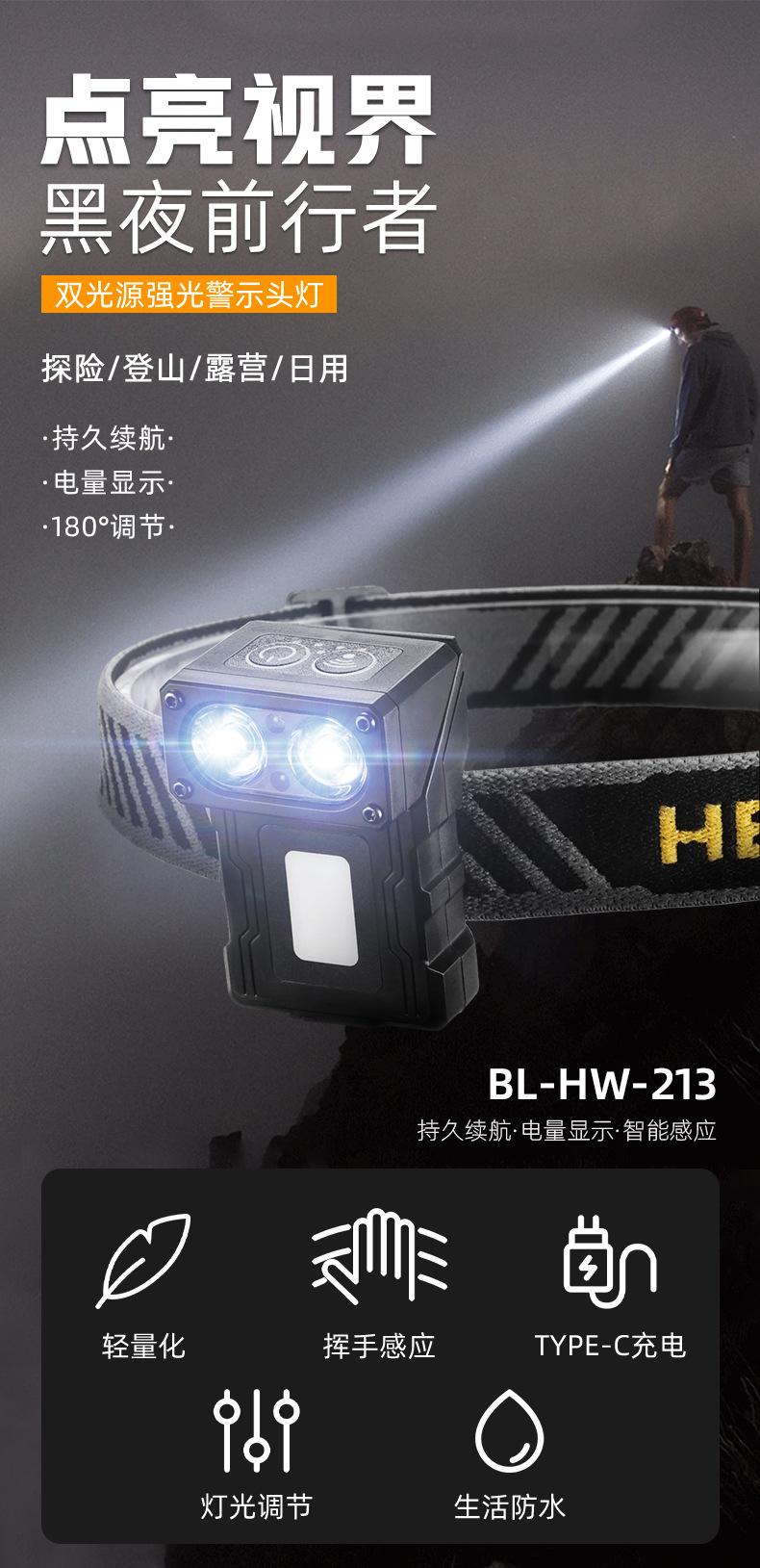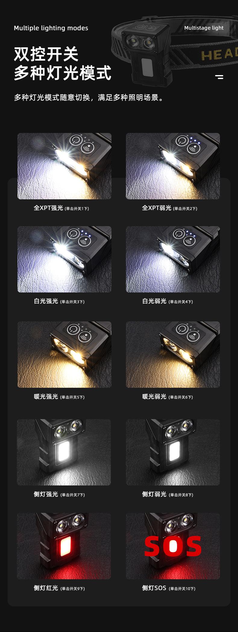 Nuevo faro portátil multifuncional transfronterizo con inducción de onda de luz fuerte, carga rápida tipo C, clip de gorra giratorio, luz de trabajo