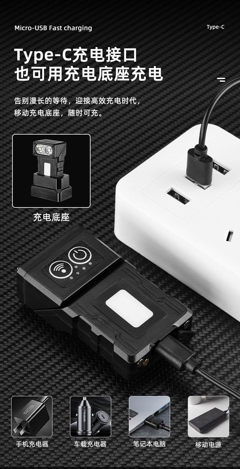 Compra Nuevo faro portátil multifuncional transfronterizo con inducción de onda de luz fuerte, carga rápida tipo C, clip de gorra giratorio, luz de trabajo al por mayor en Joom.pro