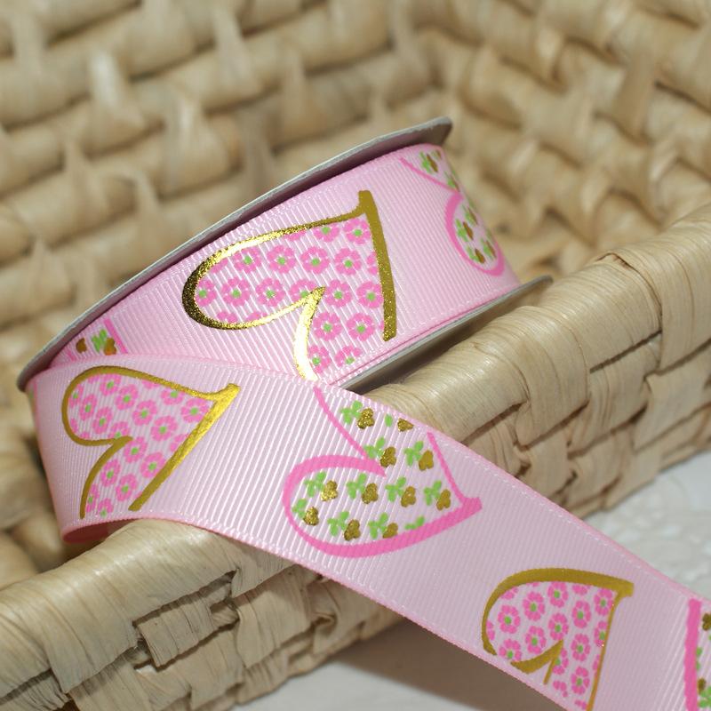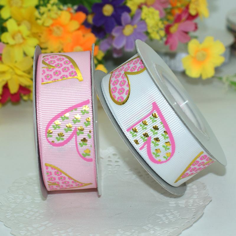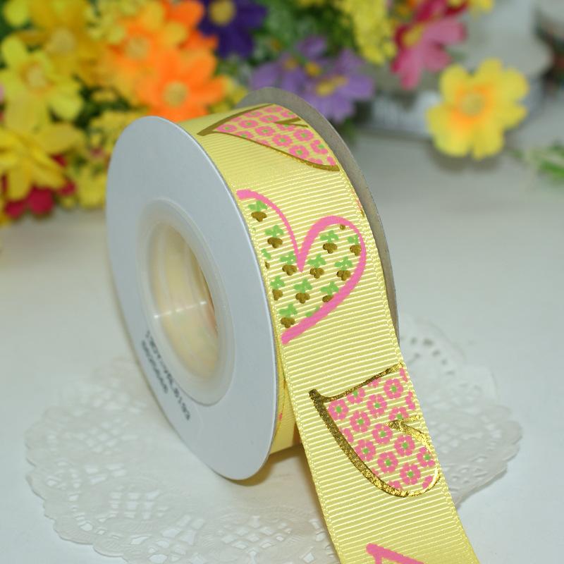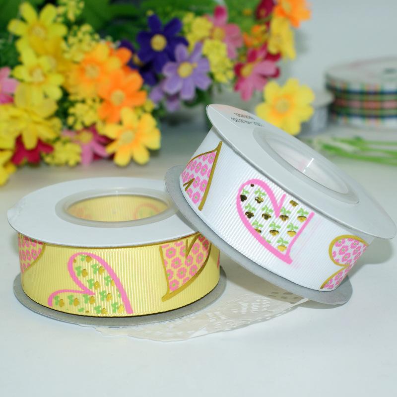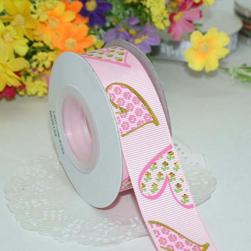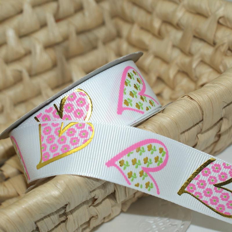 [Nombre]: Cinta de fábrica Xiamen Gordon hilo satinado corazón de durazno Día de San Valentín cinta estampada con tinta