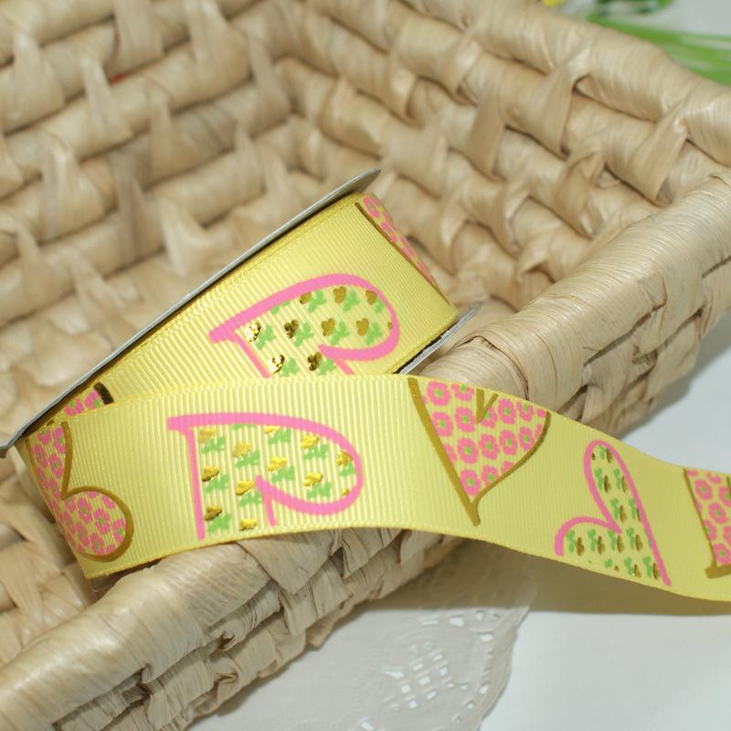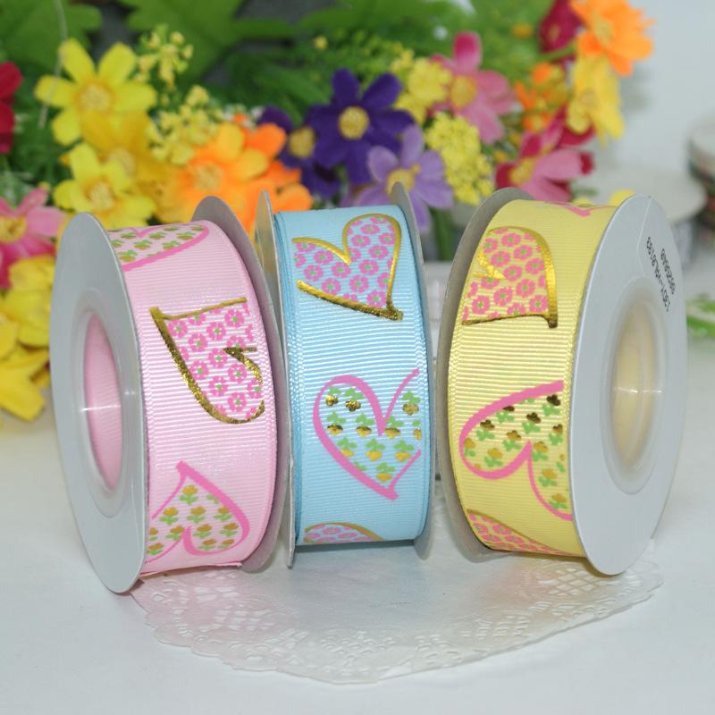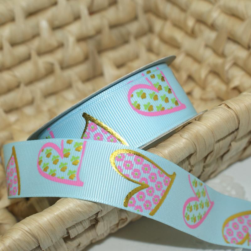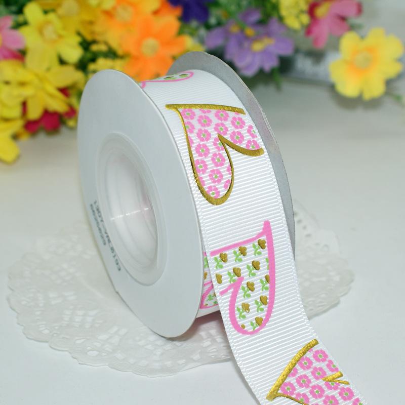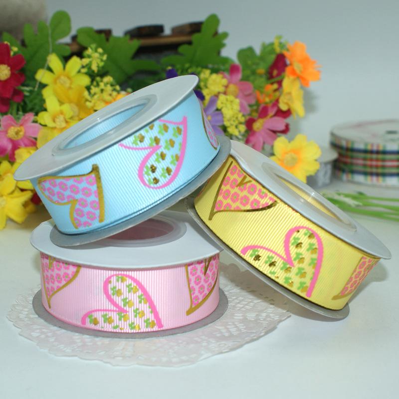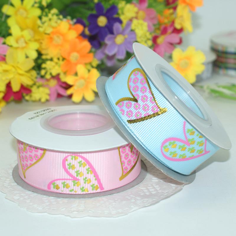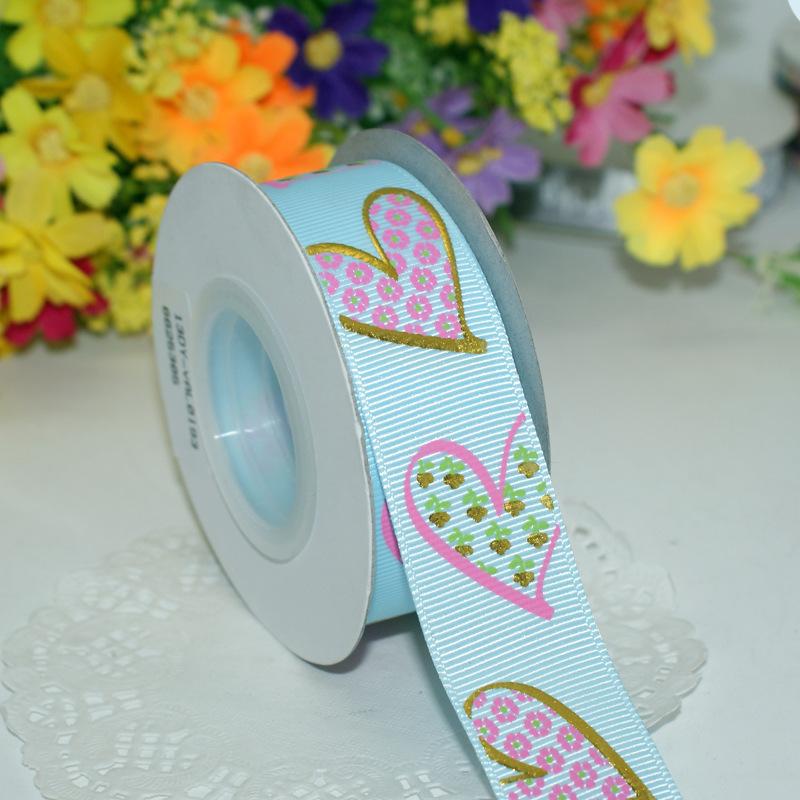 [Nombre]: Cinta de fábrica Xiamen Gordon hilo satinado corazón de durazno Día de San Valentín cinta estampada con tinta