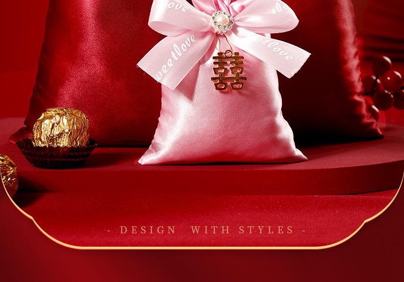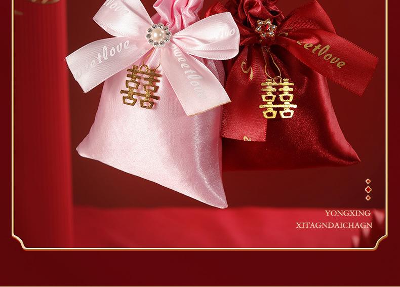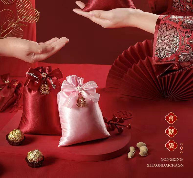 Bolsa de Embalaje para Caja de Dulces de Boda Bolsa Roja para Dulces de Boda Boca con Cordón Bolsa para Regalo de Acompañamiento Bolsa de Terciopelo Portátil para Dulces Venta al por Mayor